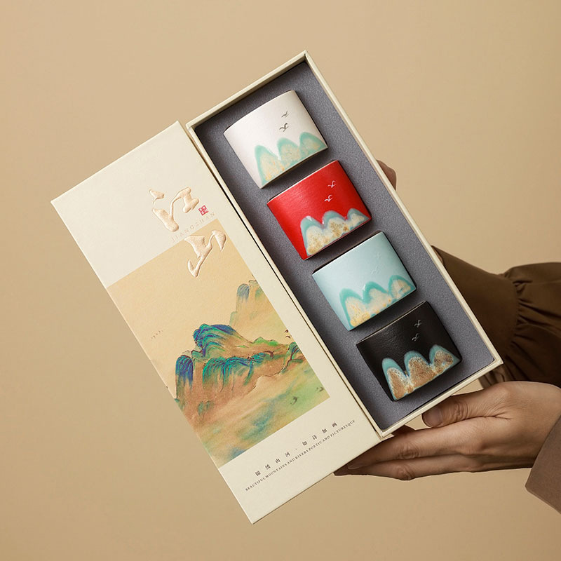 jinxiu jiangshan-guanshan four-color cup + gift box