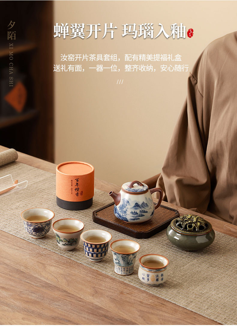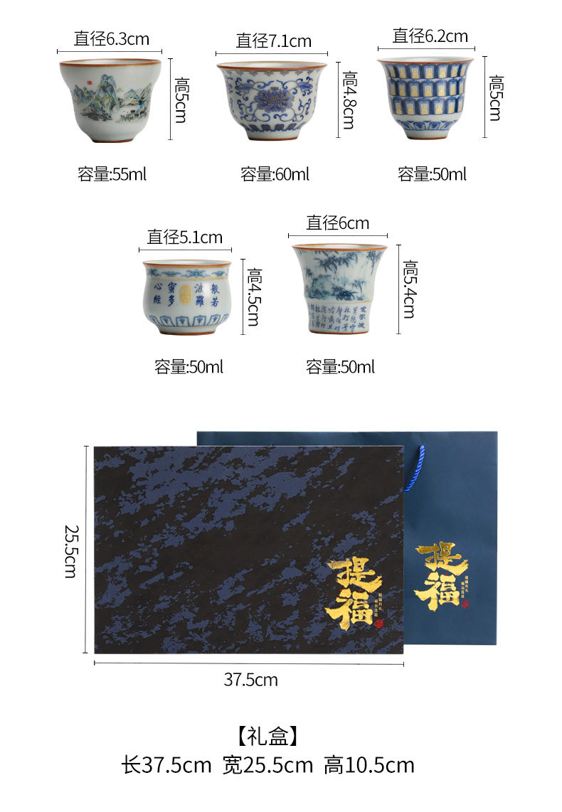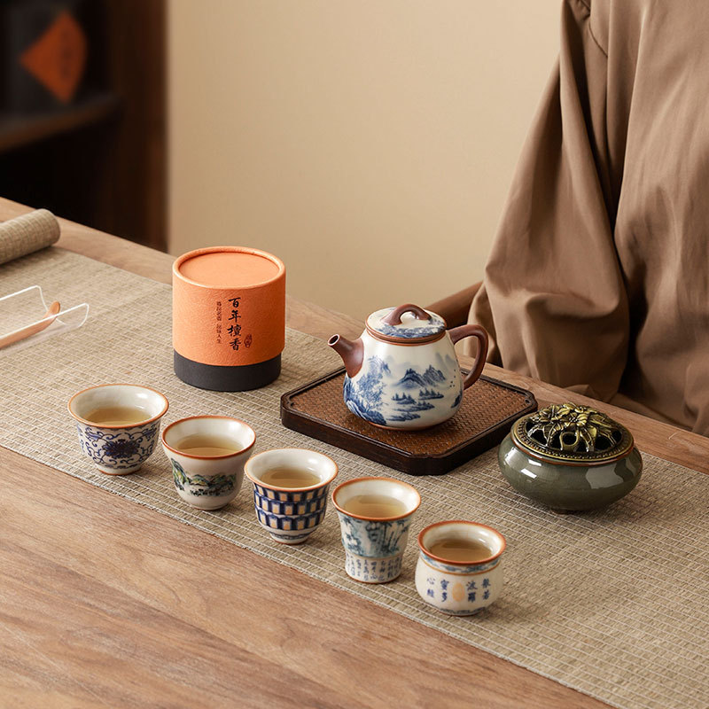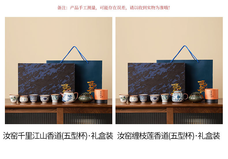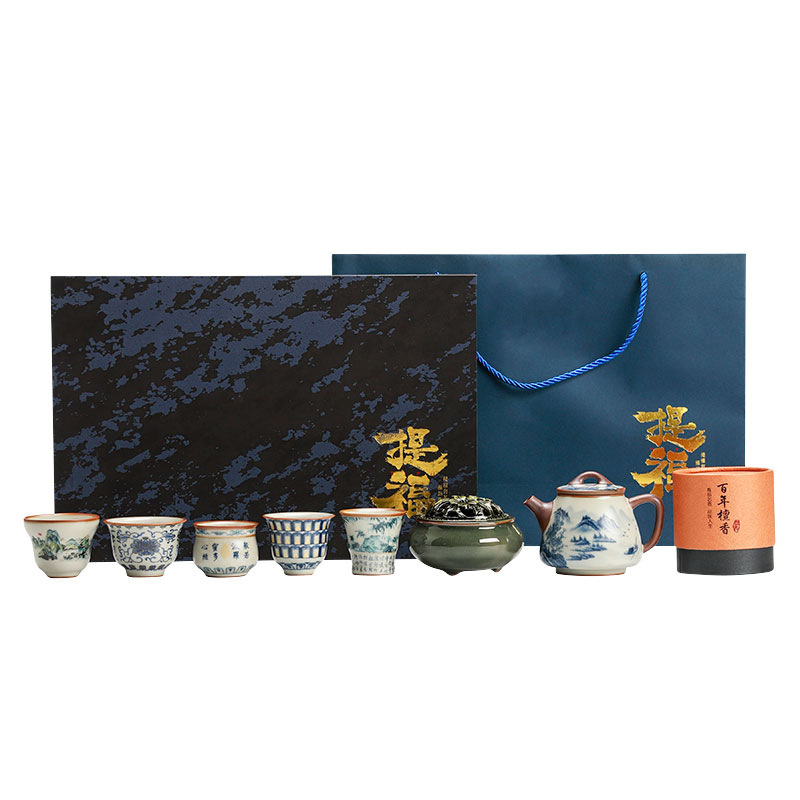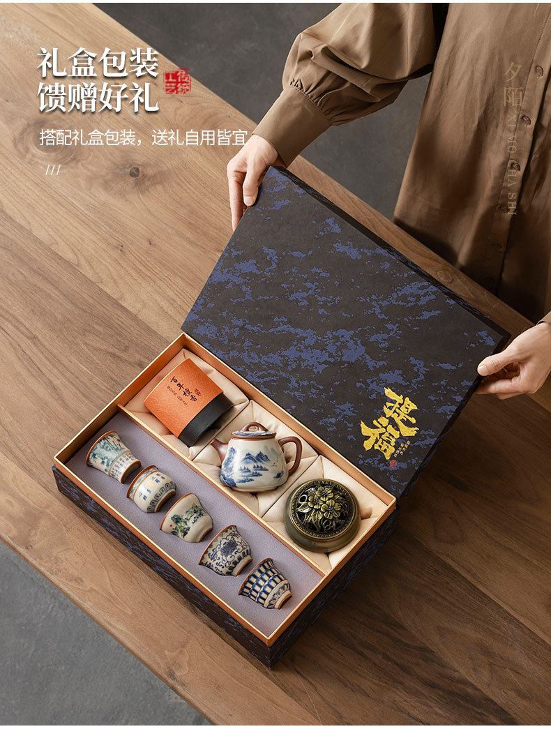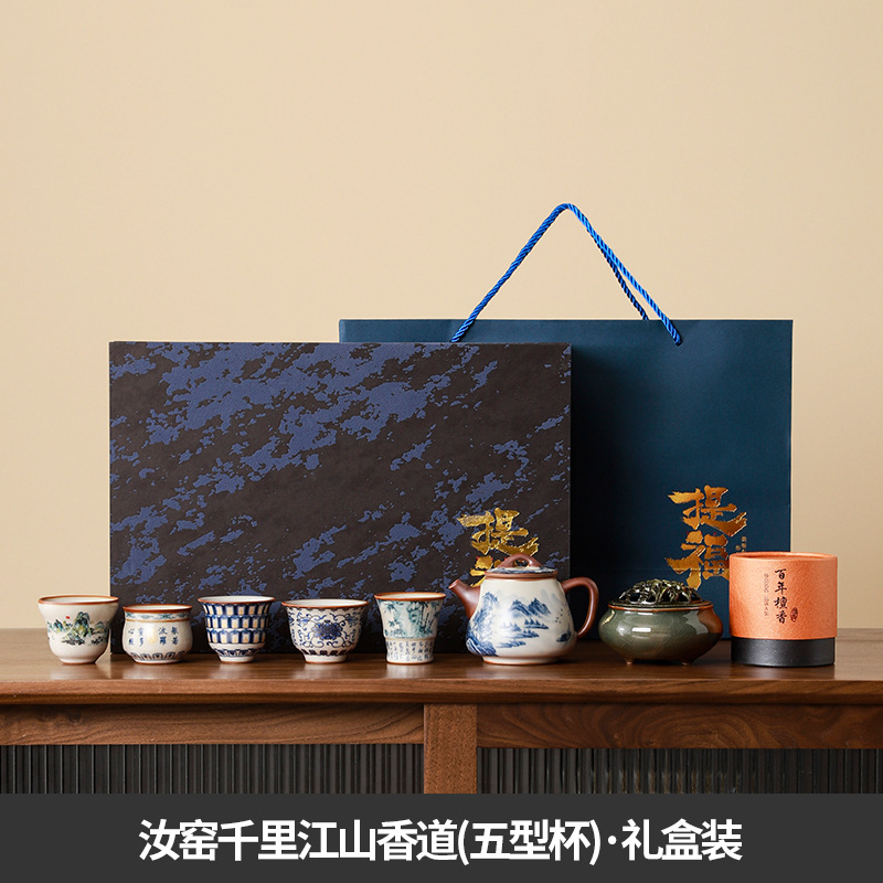 complete set of ru ware enamel color thousand-li landscape incense (five-type cup) + gift box
