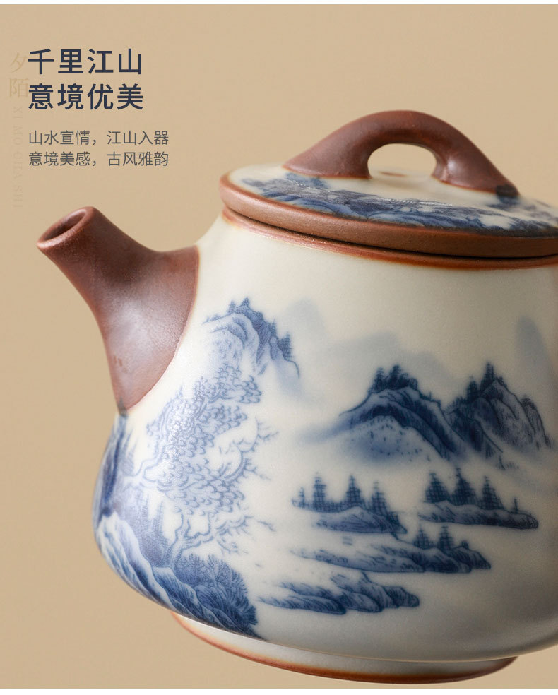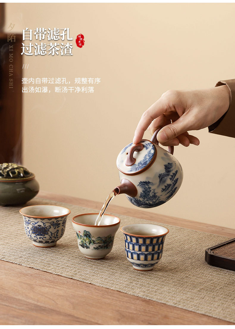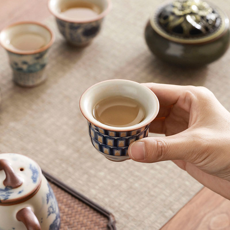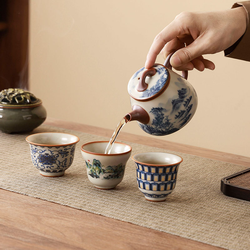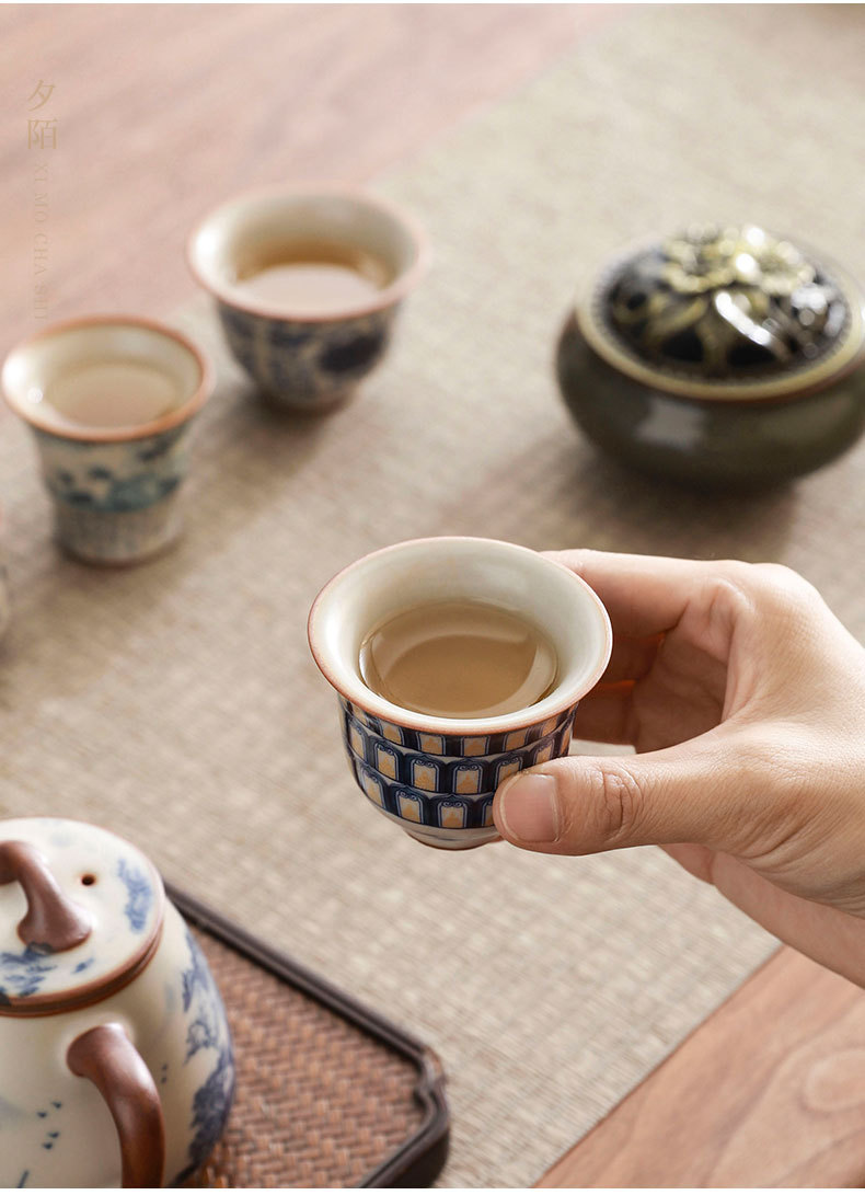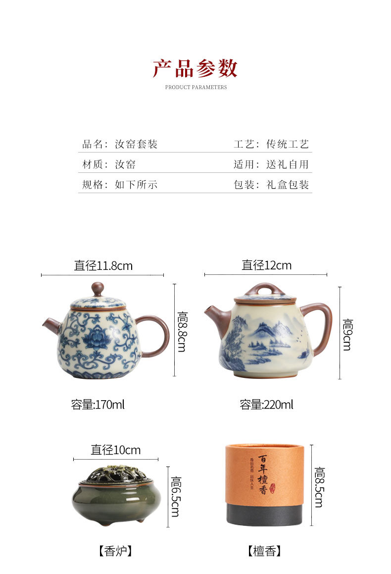 complete set of ru ware enamel color thousand-li landscape incense (five-type cup) + gift box