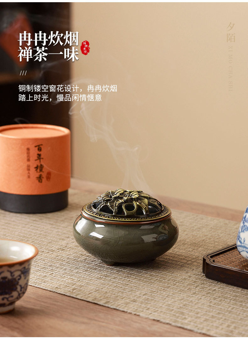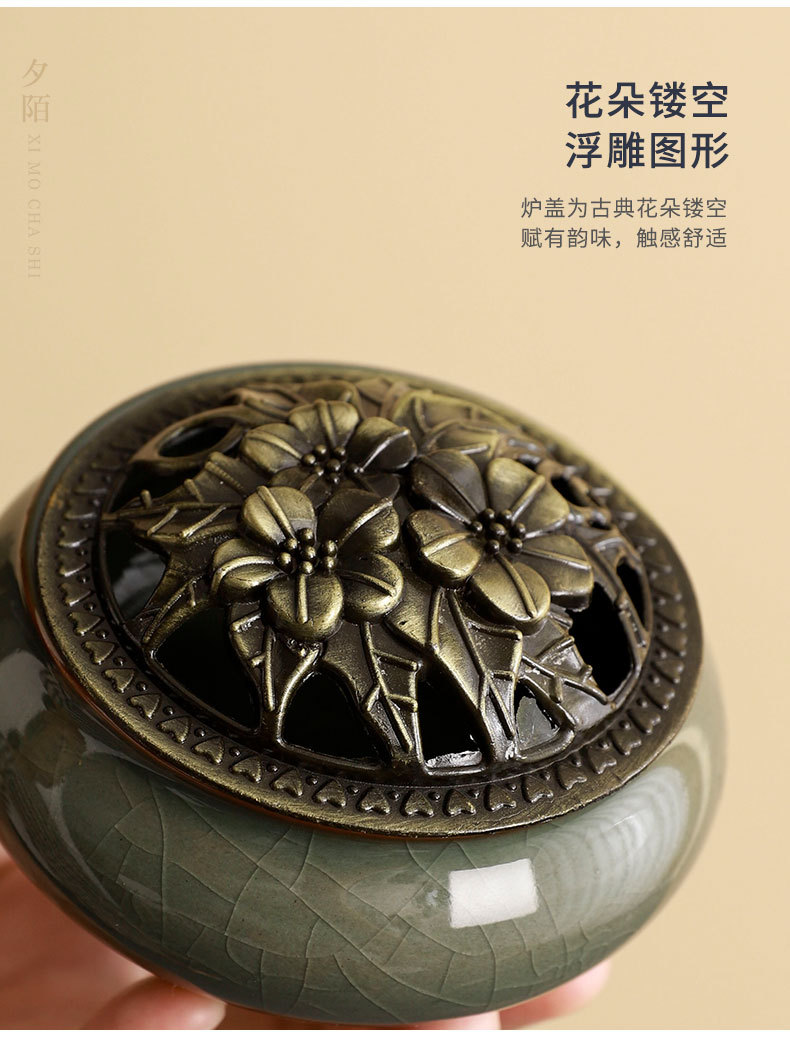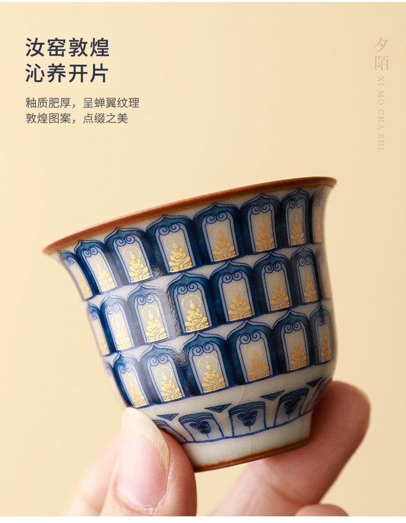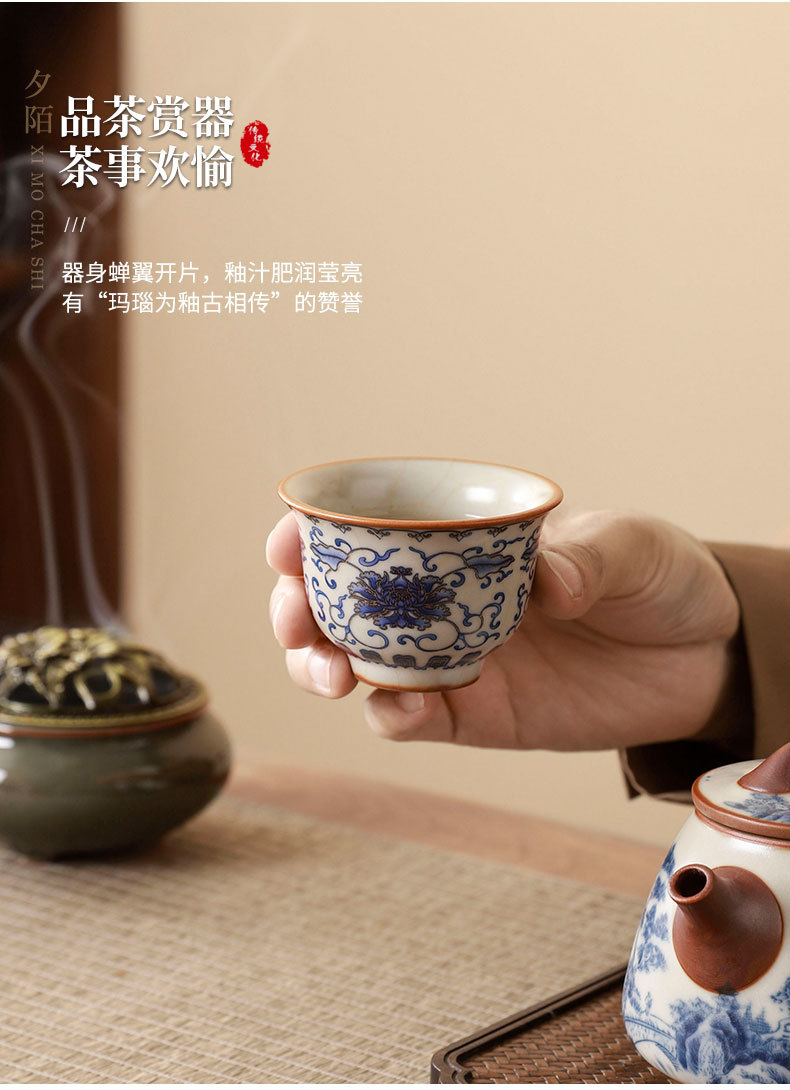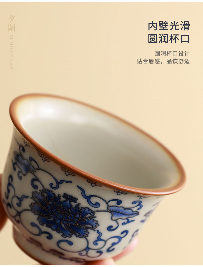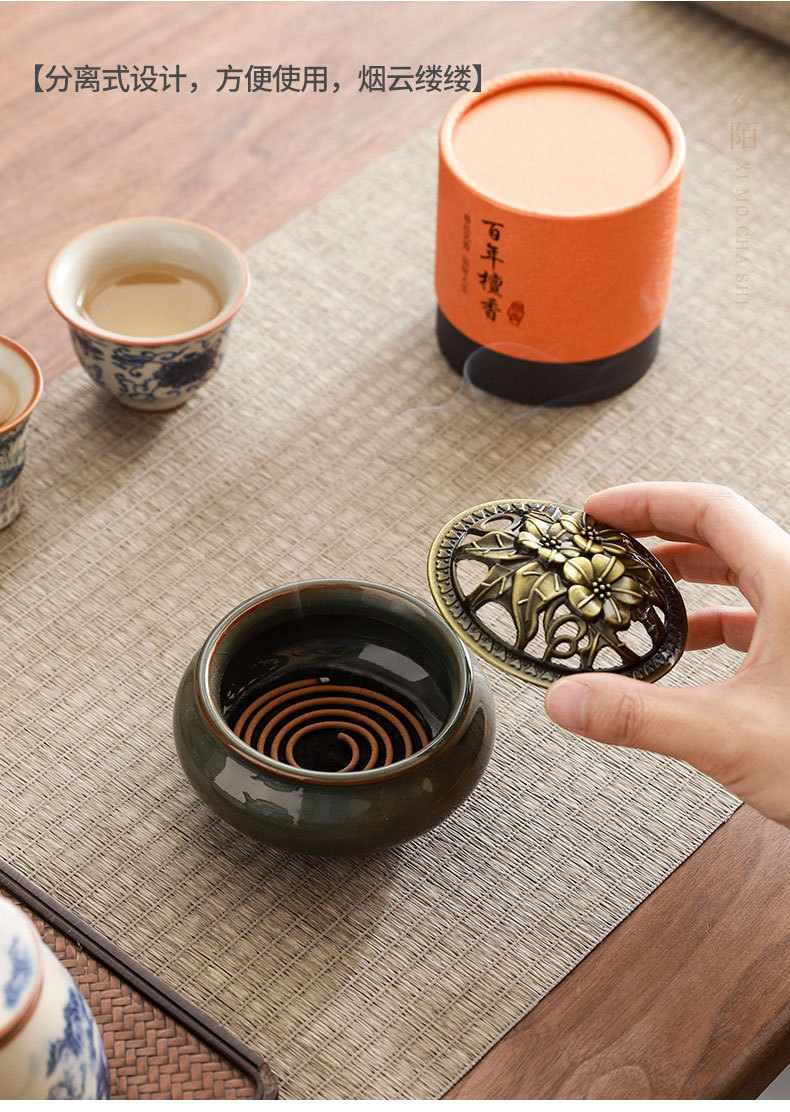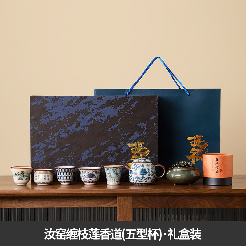 complete set of ru ware enamel color interlock branch lotus incense (five-type cup) + gift box