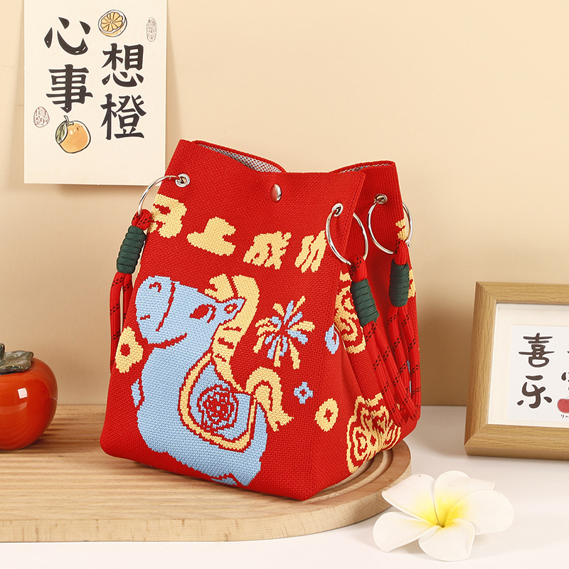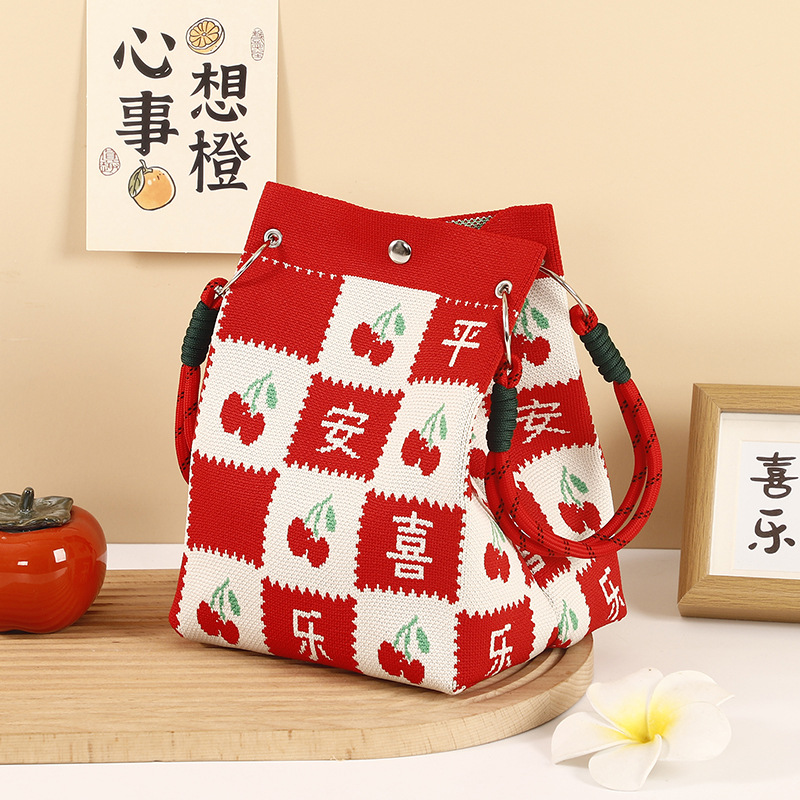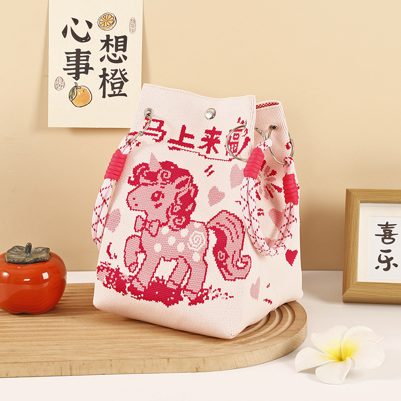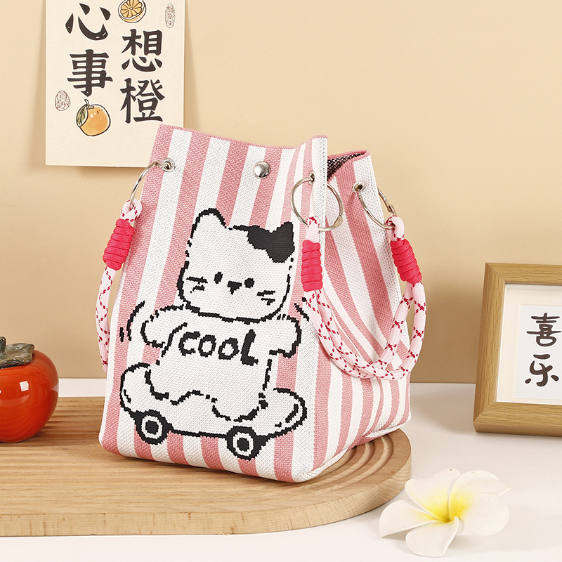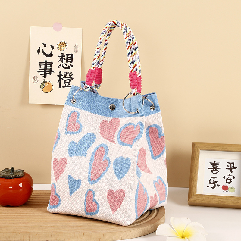 anime net red fashion handbag women's knitted wool bucket bag hand carrying casual tote bag box lunch bag wholesale