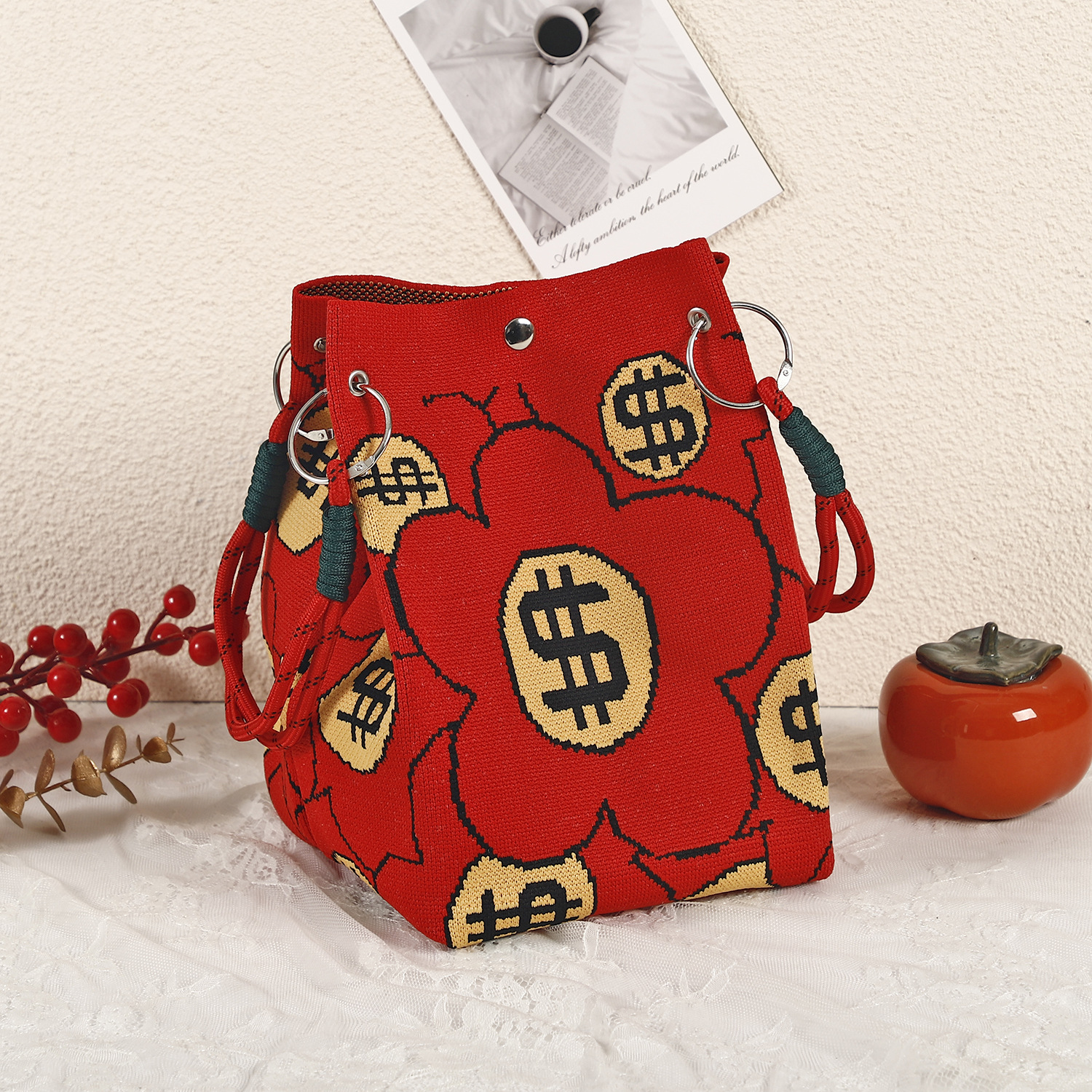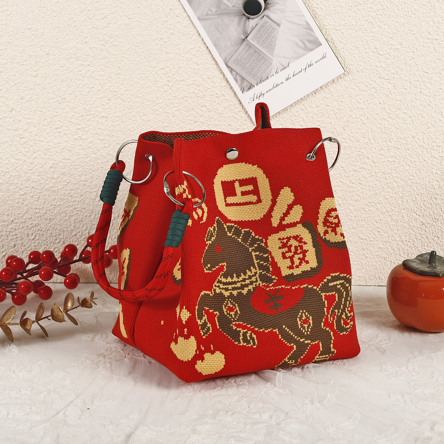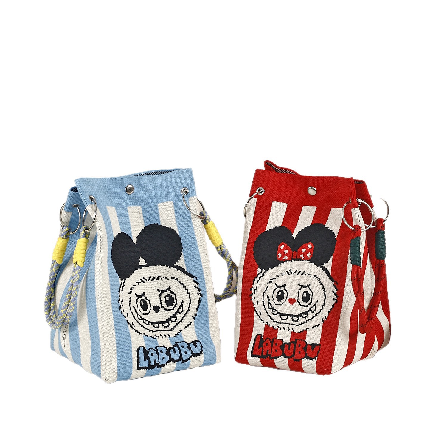 anime net red fashion handbag women's knitted wool bucket bag hand carrying casual tote bag box lunch bag wholesale