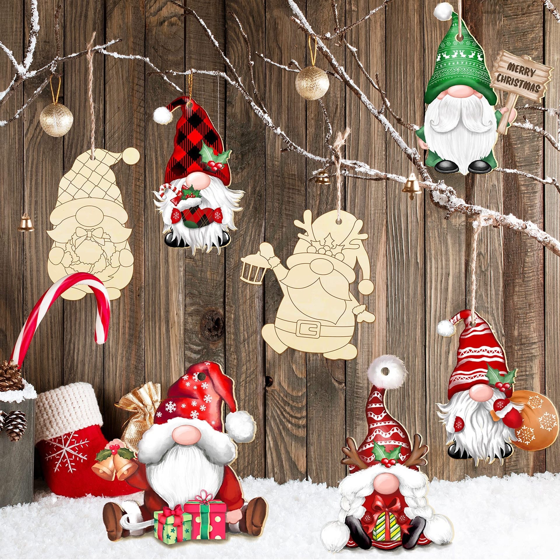 christmas hanging ornaments, wooden pendant tags with jute rope, christmas tree decorations, small gift pendants, wooden crafts