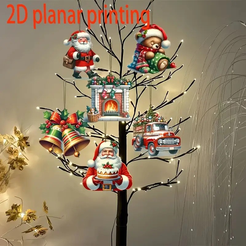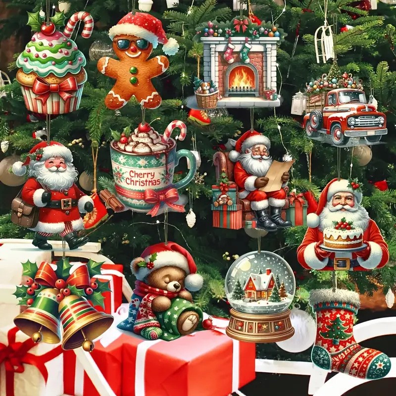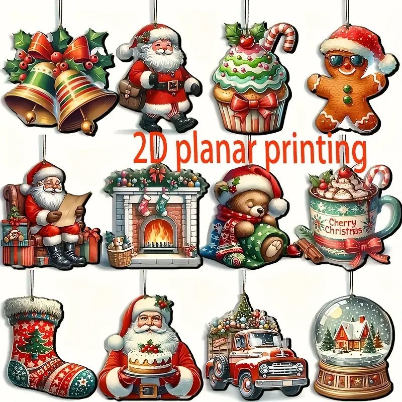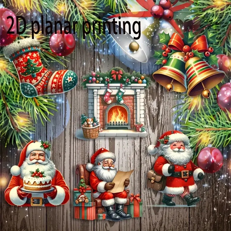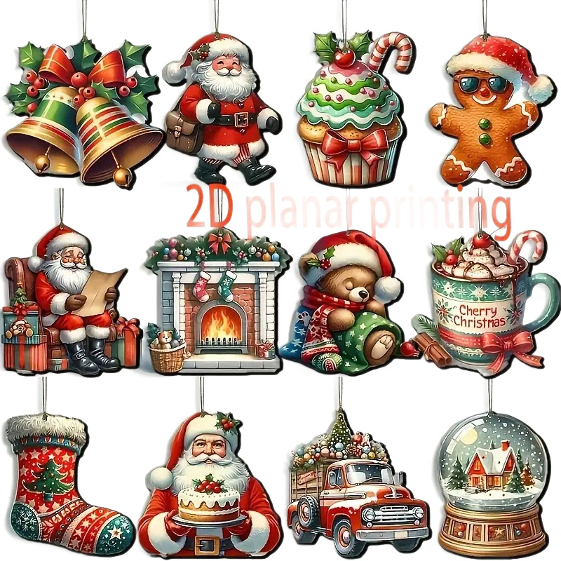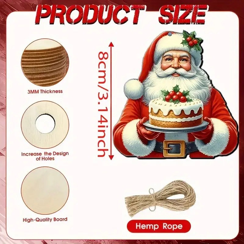 24-piece winter christmas wooden hanging ornaments, featuring santa claus and snowball motifs.