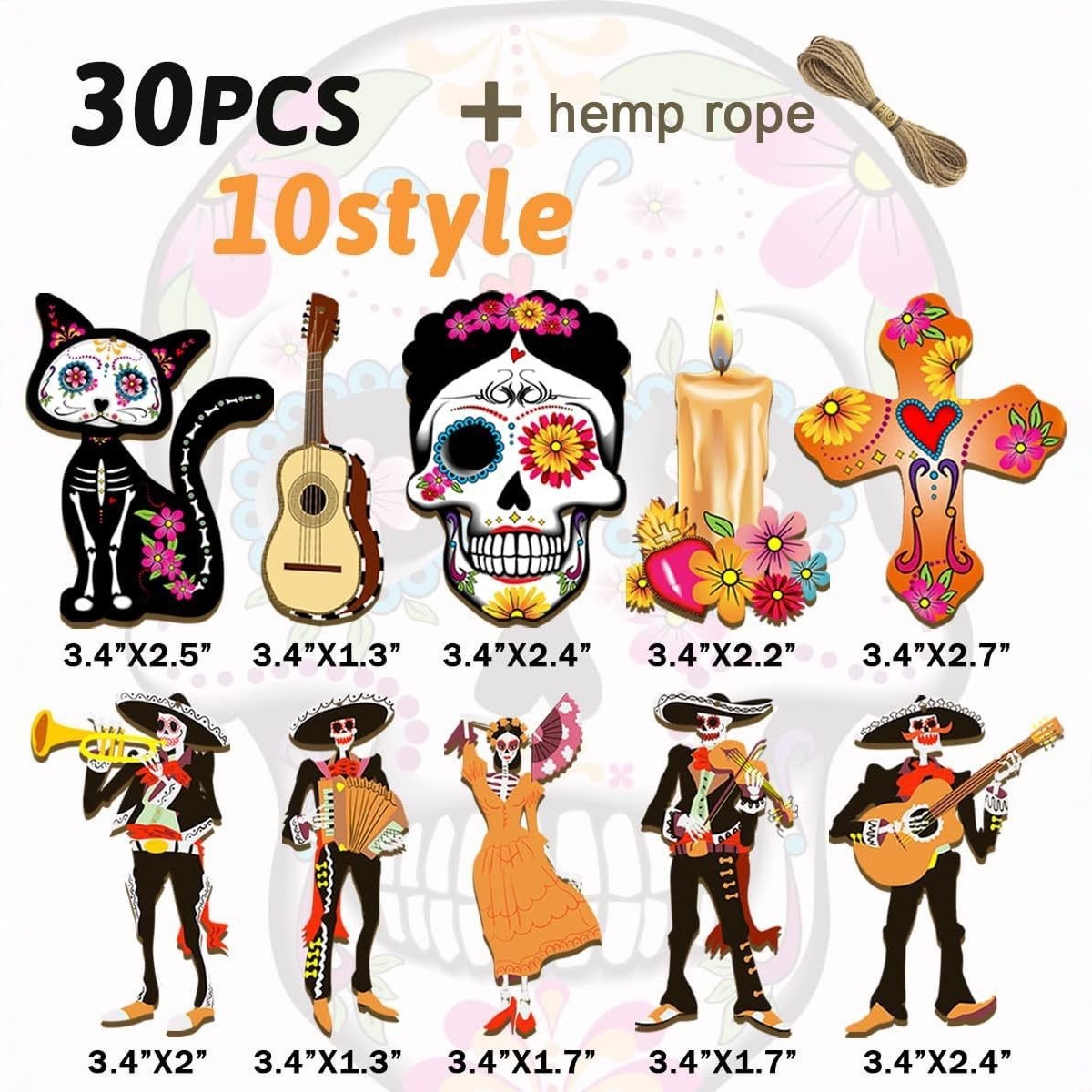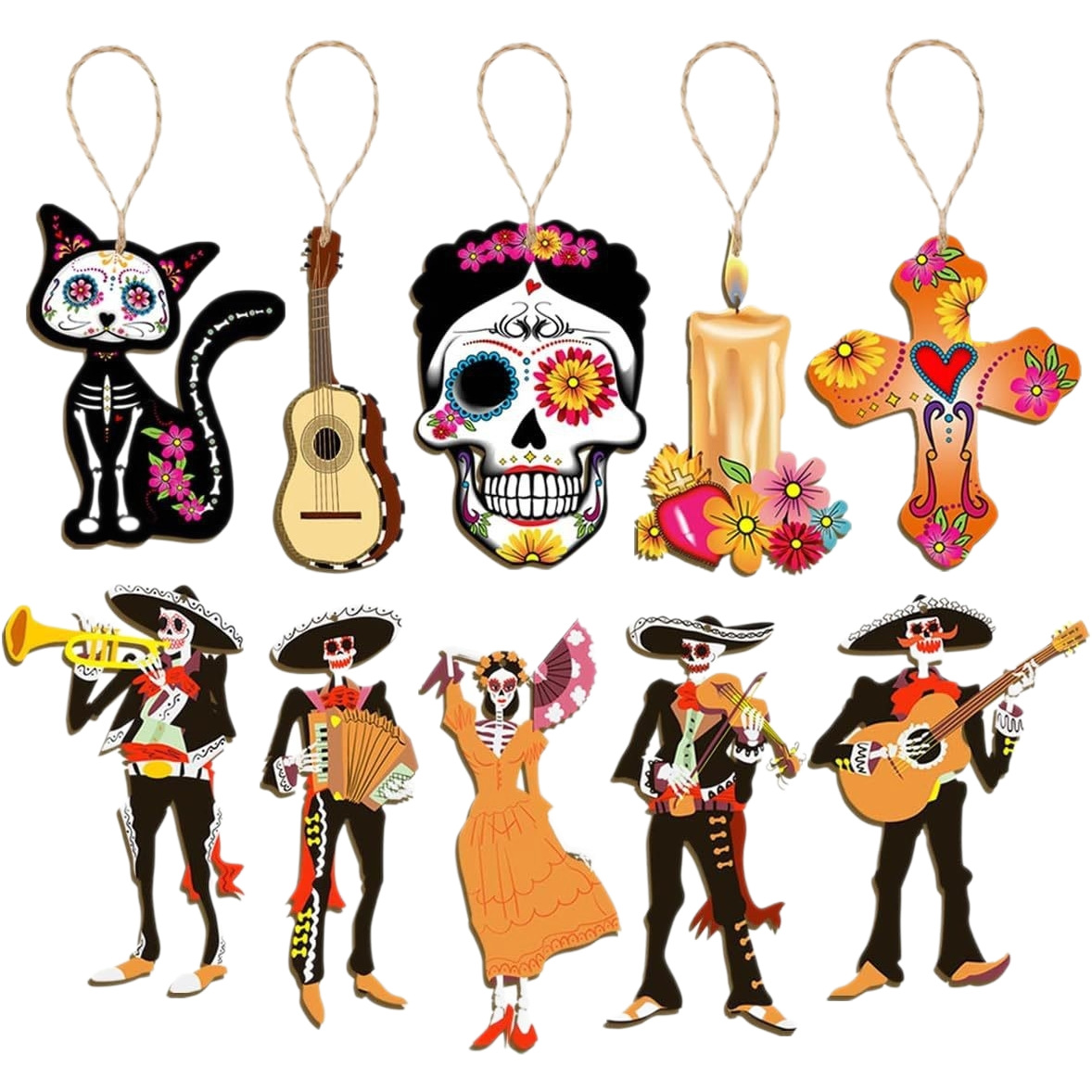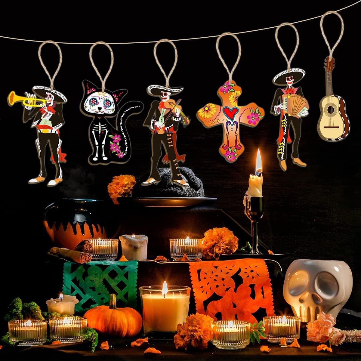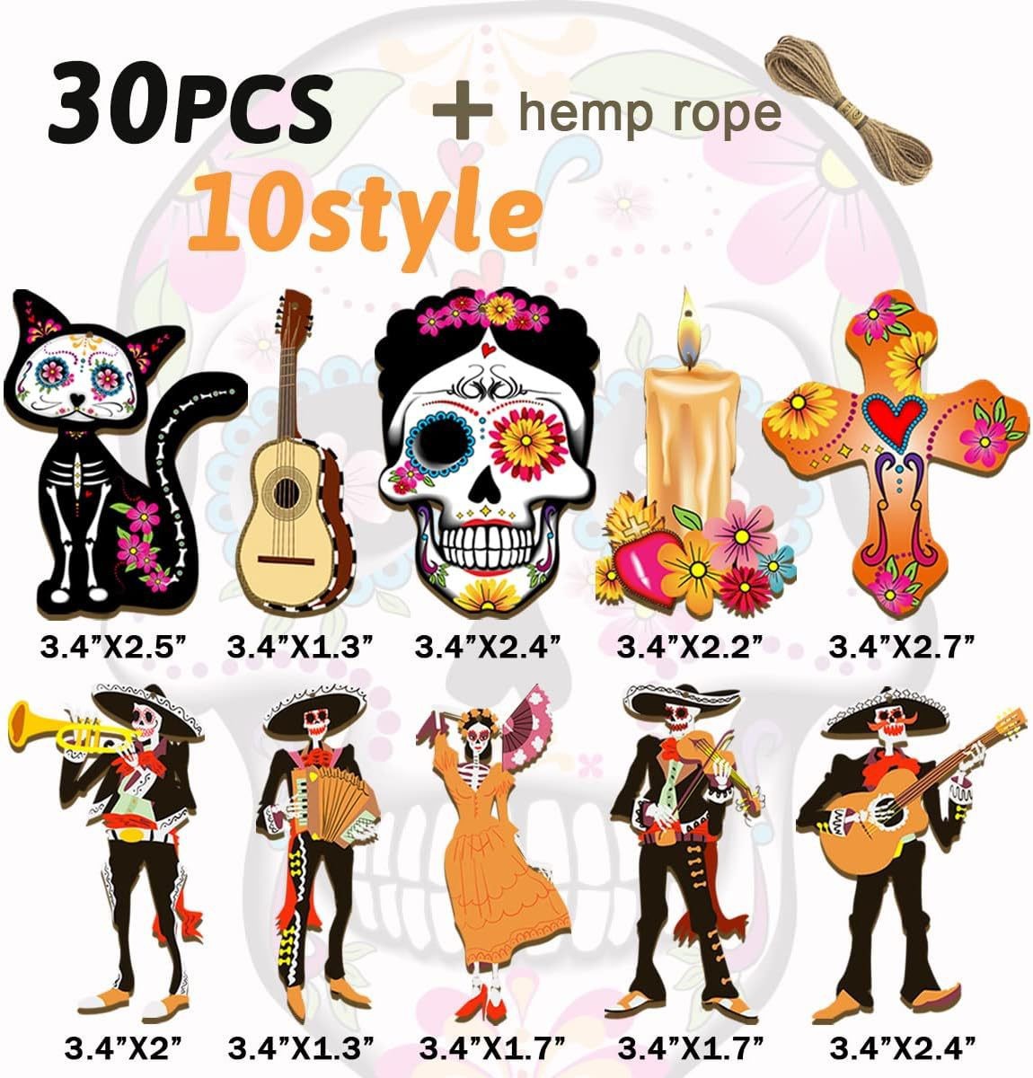 cross-border new arrival 30 pcs mexican undead halloween wooden decoration skull desktop theme party pendant