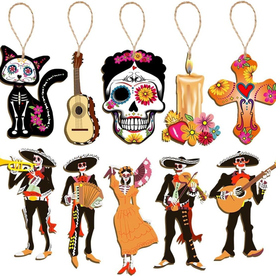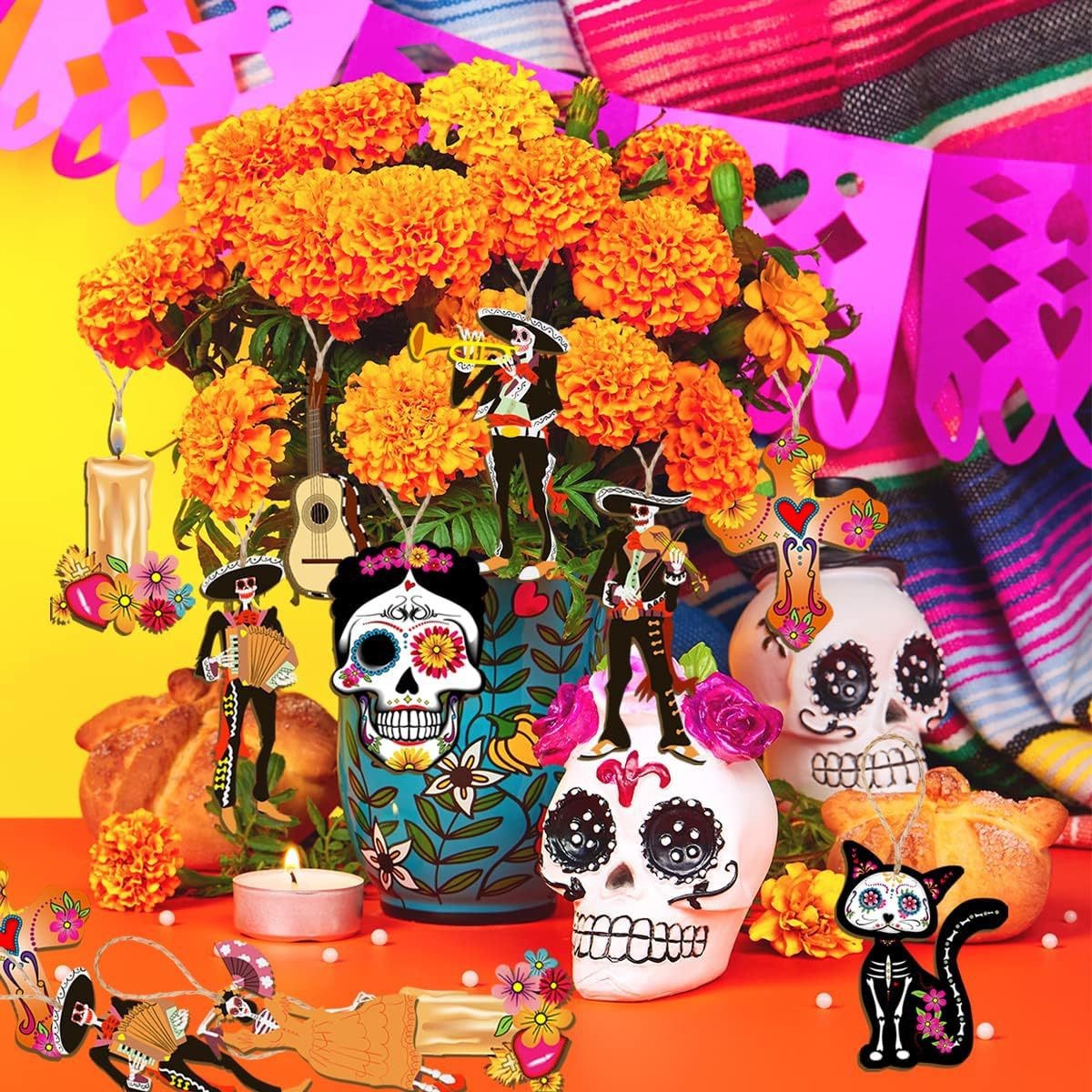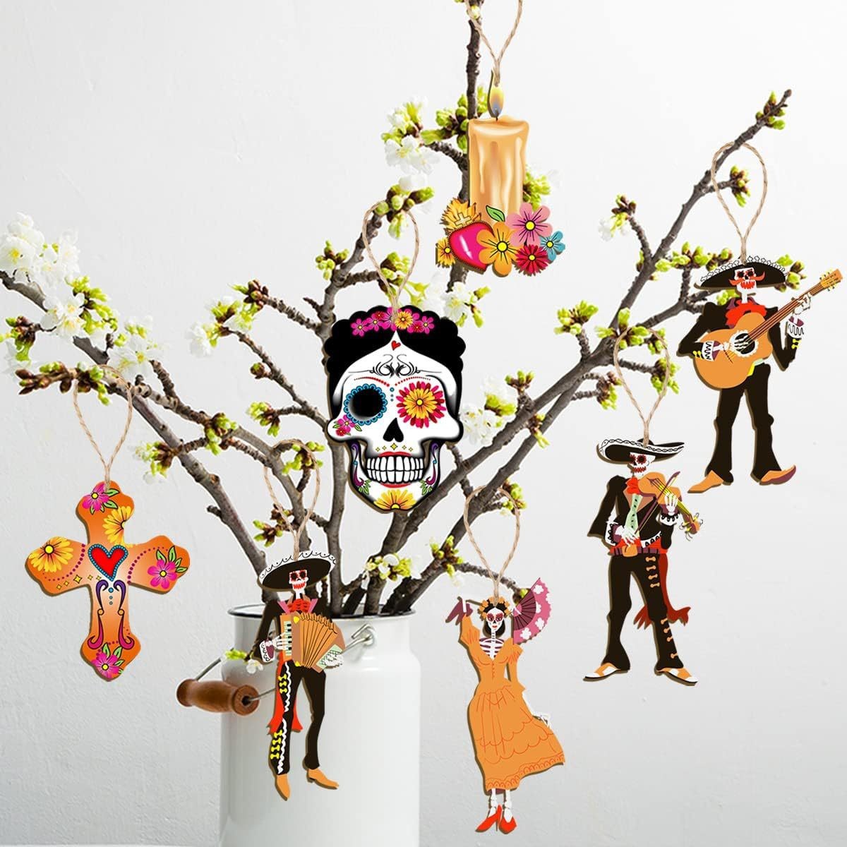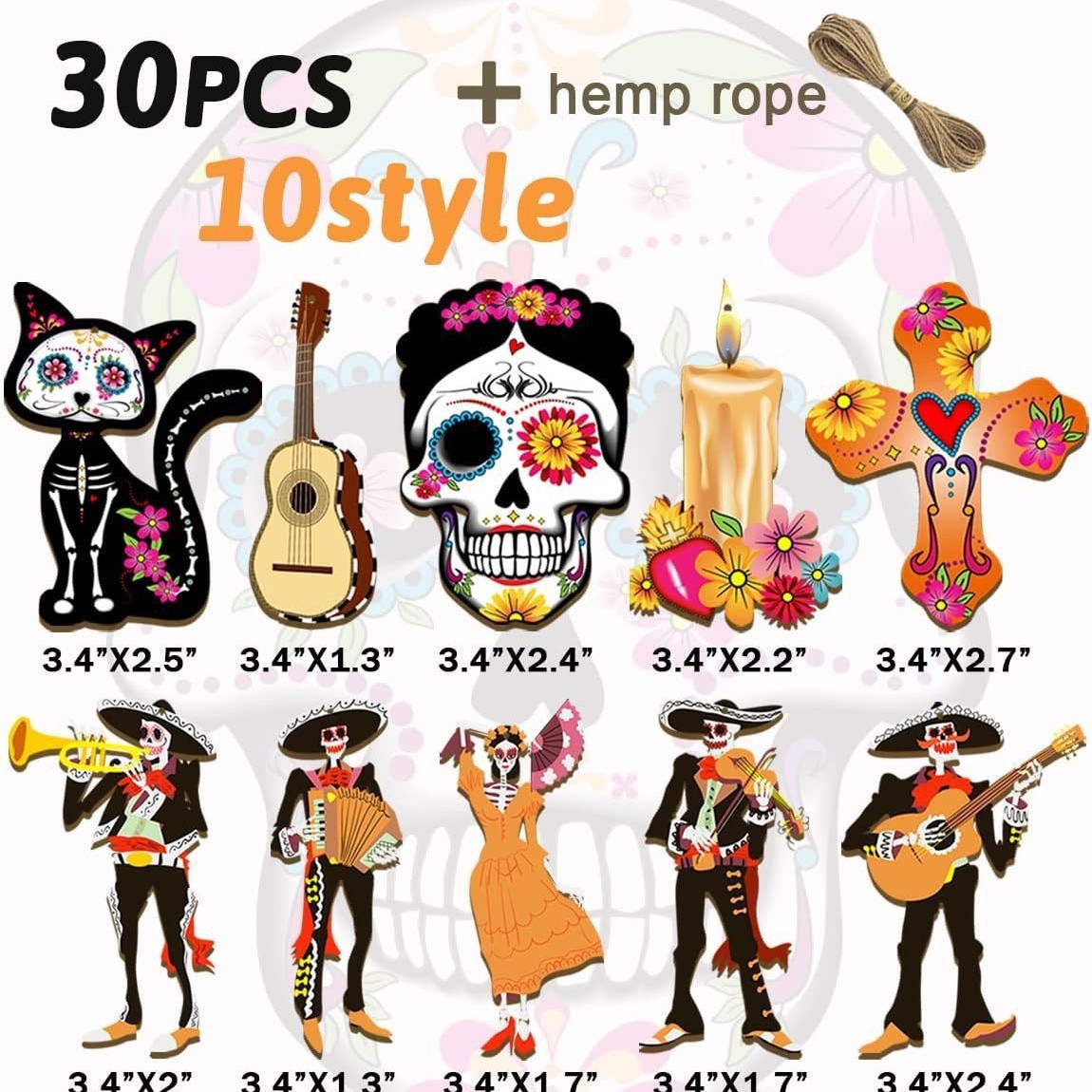 cross-border new arrival 30 pcs mexican undead halloween wooden decoration skull desktop theme party pendant