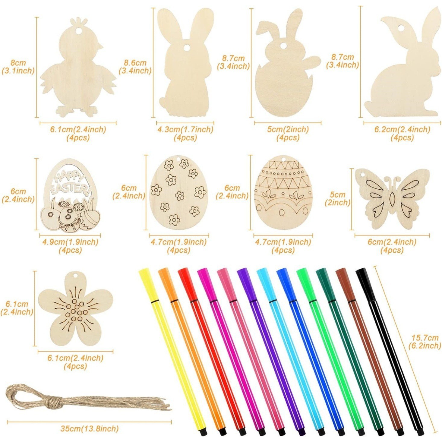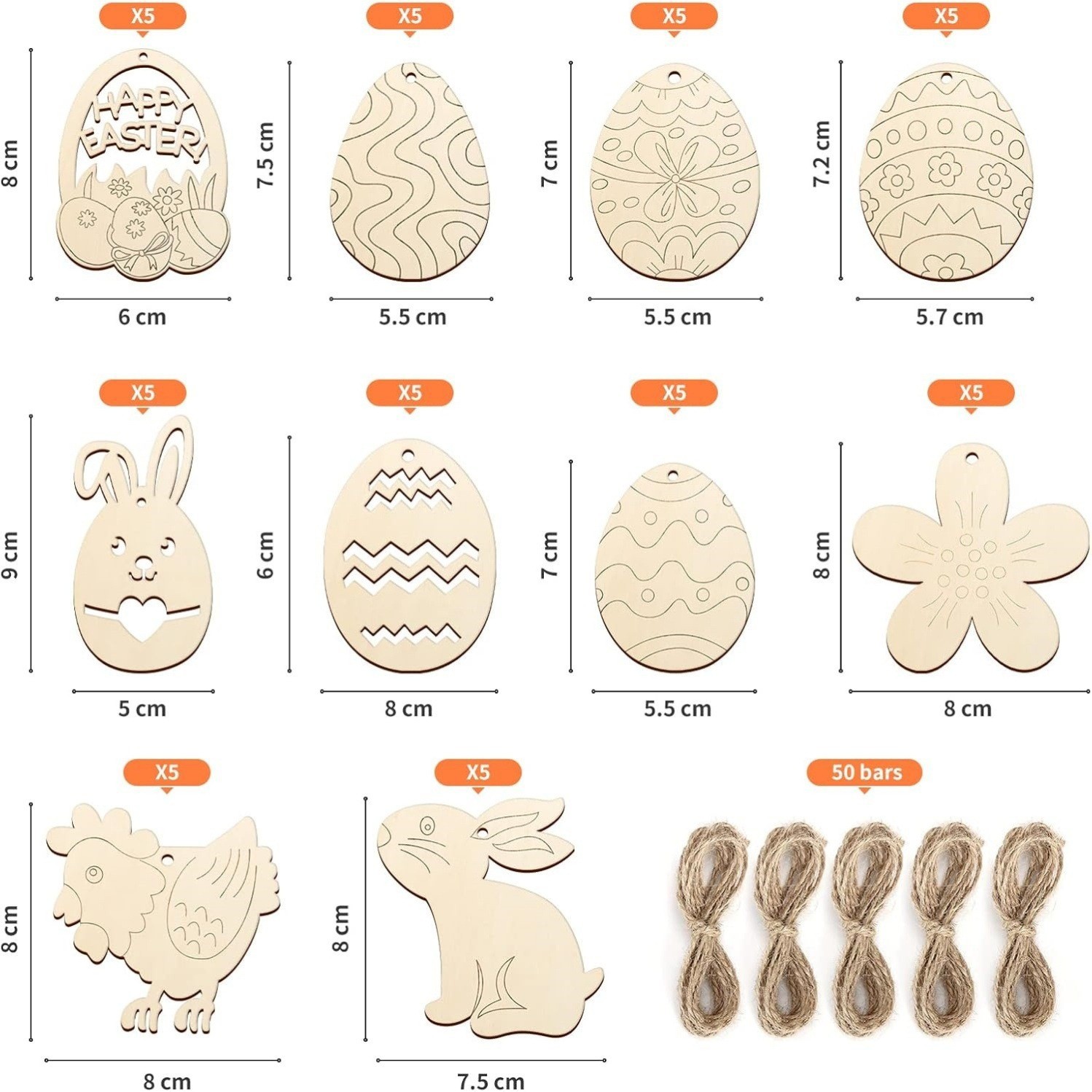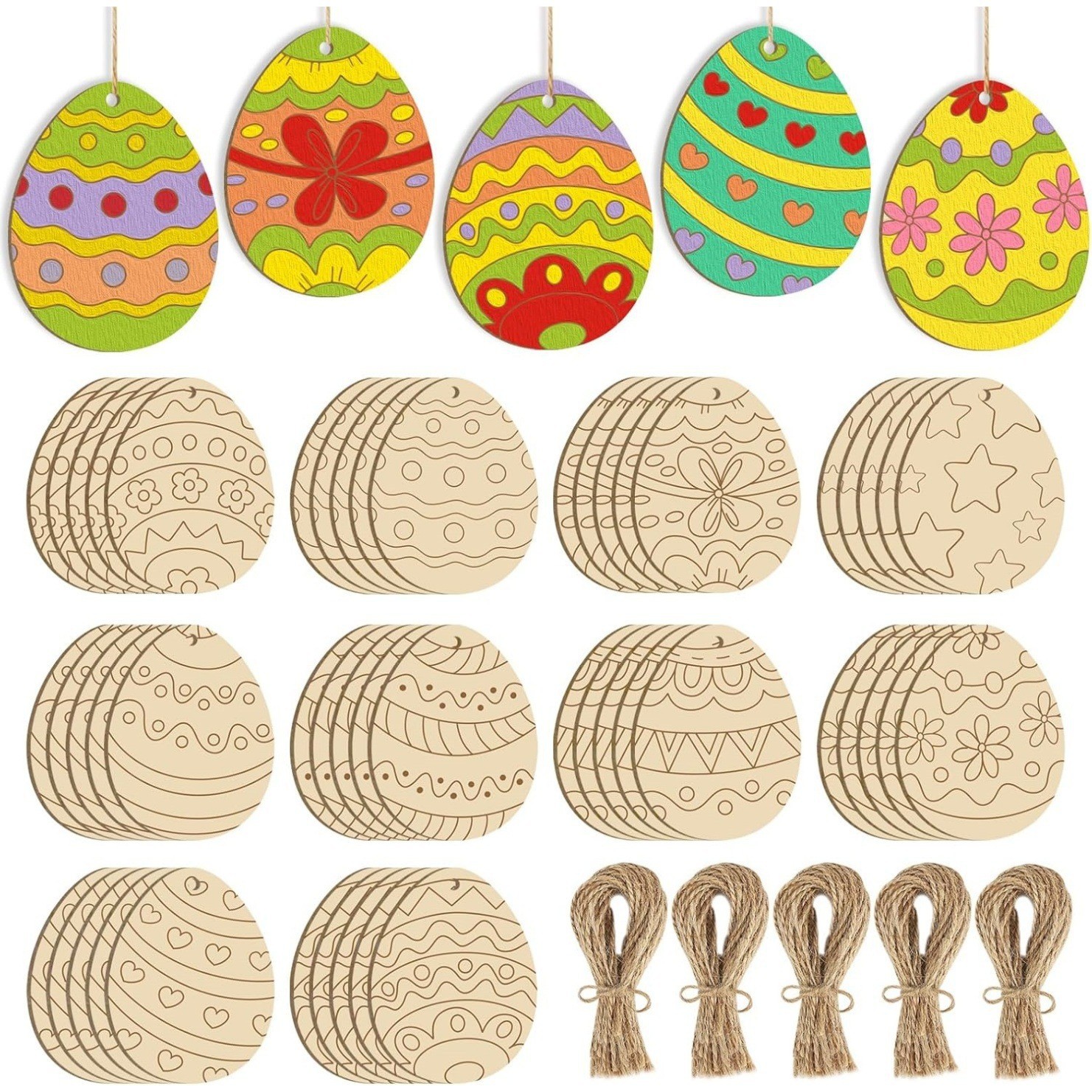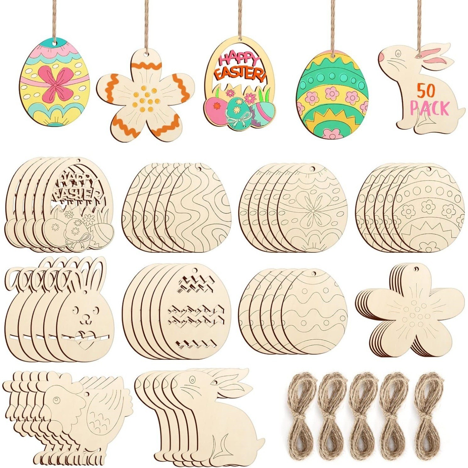 color: easter 50-piece set (10*5 pieces each) + hemp rope 5