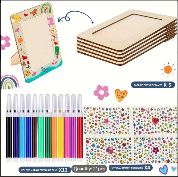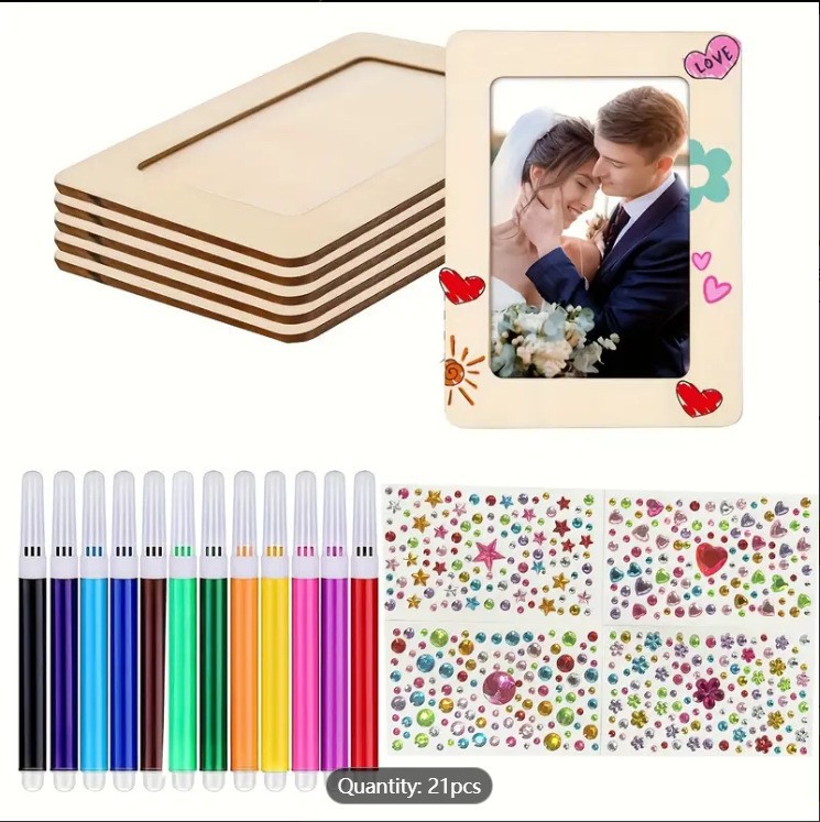 cross-border children's diy graffiti toys wooden craftwork handcraft painting wooden board painting photo frame painting set