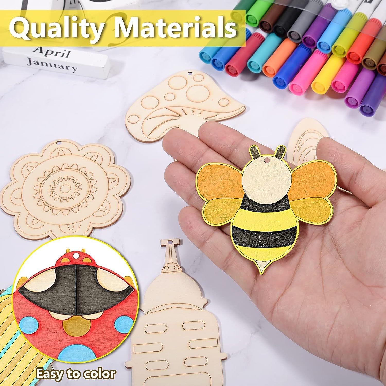 cartoon wooded craft flower insecta wood piece pendant hand-painted coloring children's handmade diy painted materials