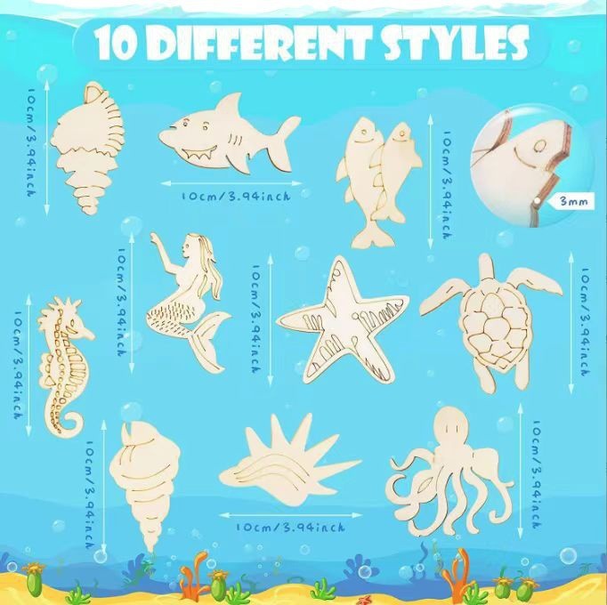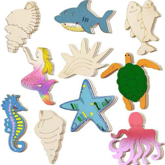 diy wooden ornament accessories cartoon seahorse mermaid and other marine animal pendants wood piece in stock wholesale