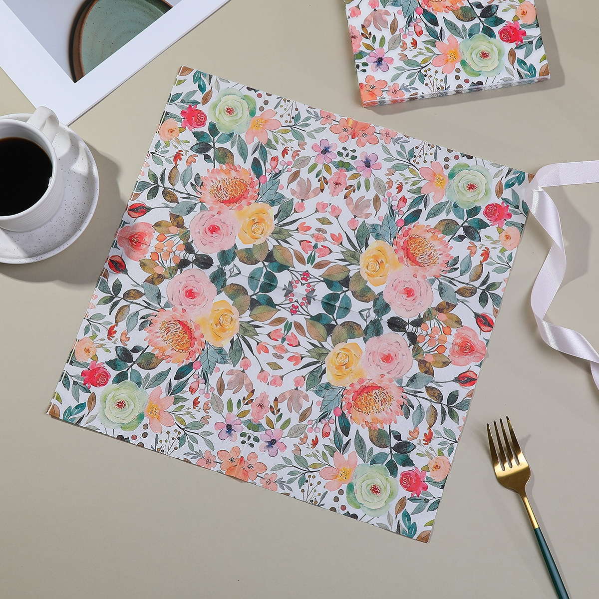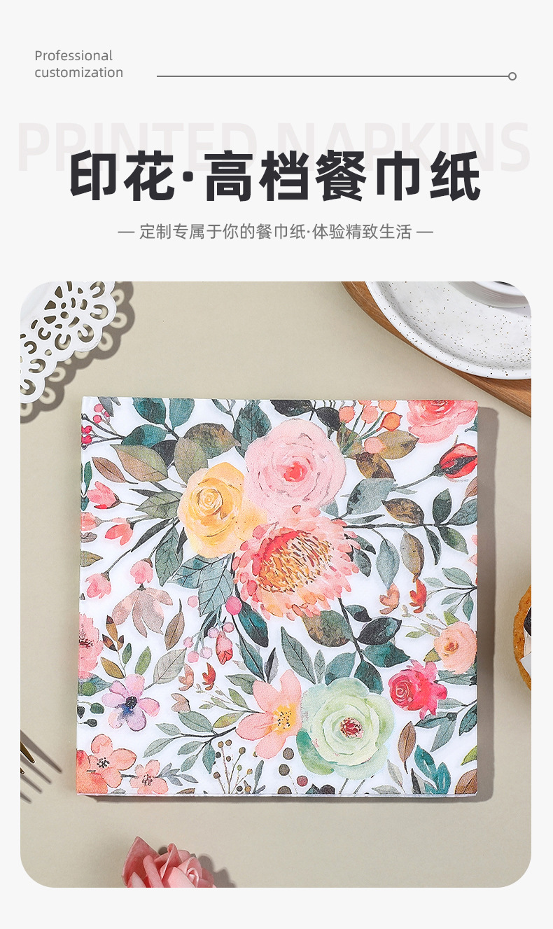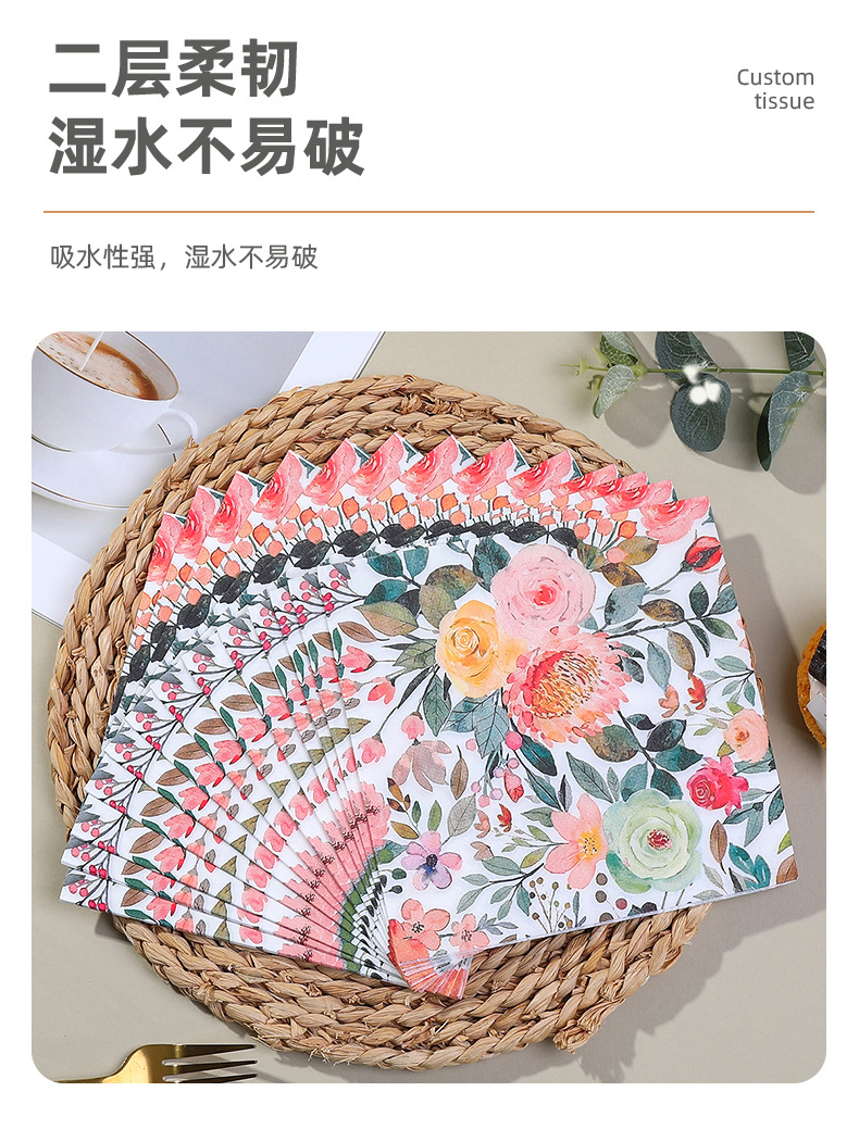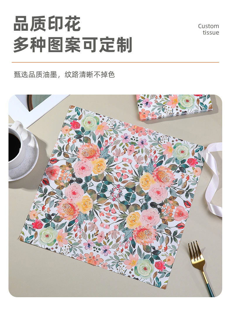 printed napkin colorful floral series party restaurant gathering decoration disposable paper towel cross-border wholesale