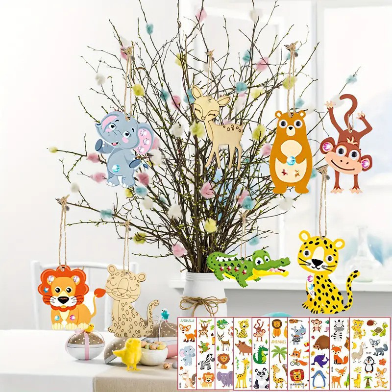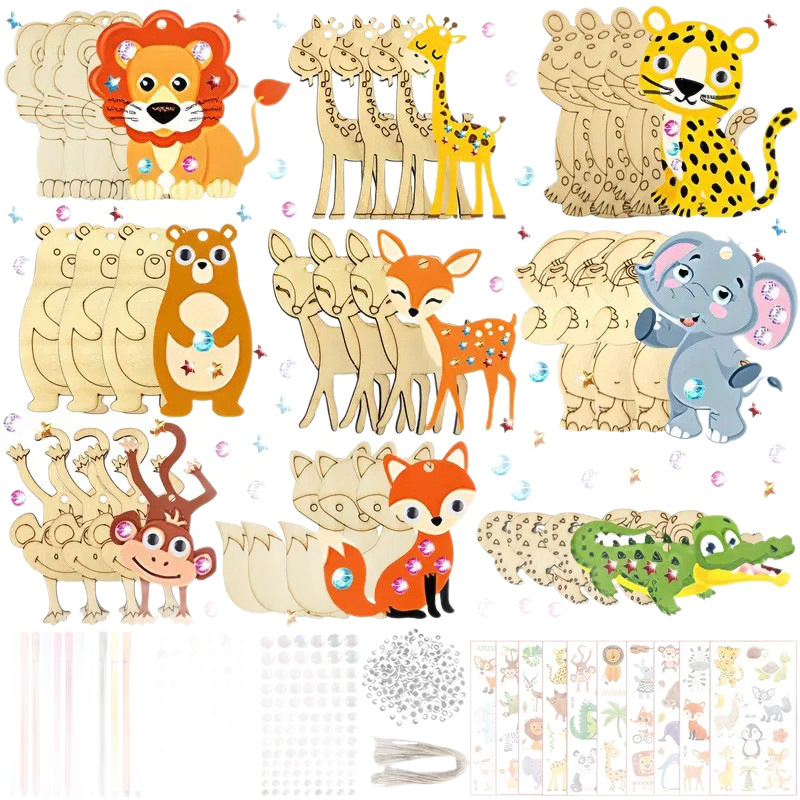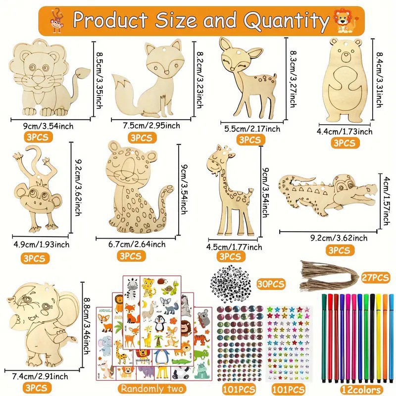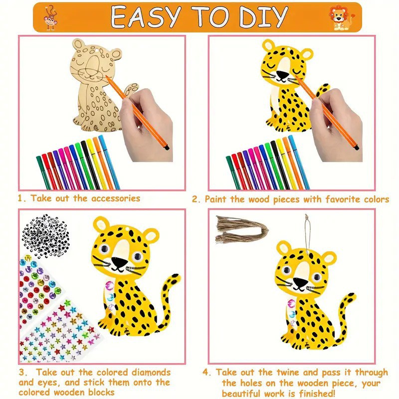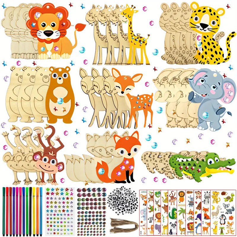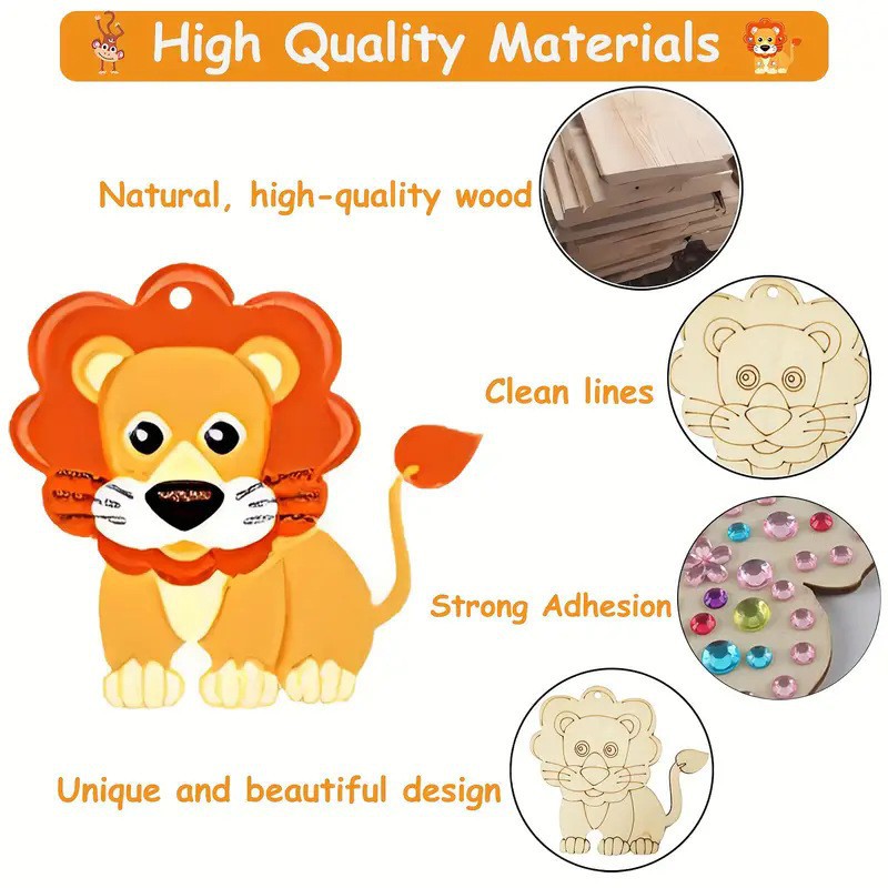 factory direct sales wooden animal lion wolf leopard raw wood color wood piece handmade diy painting pattern size customizable