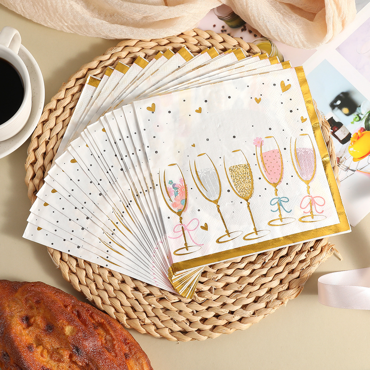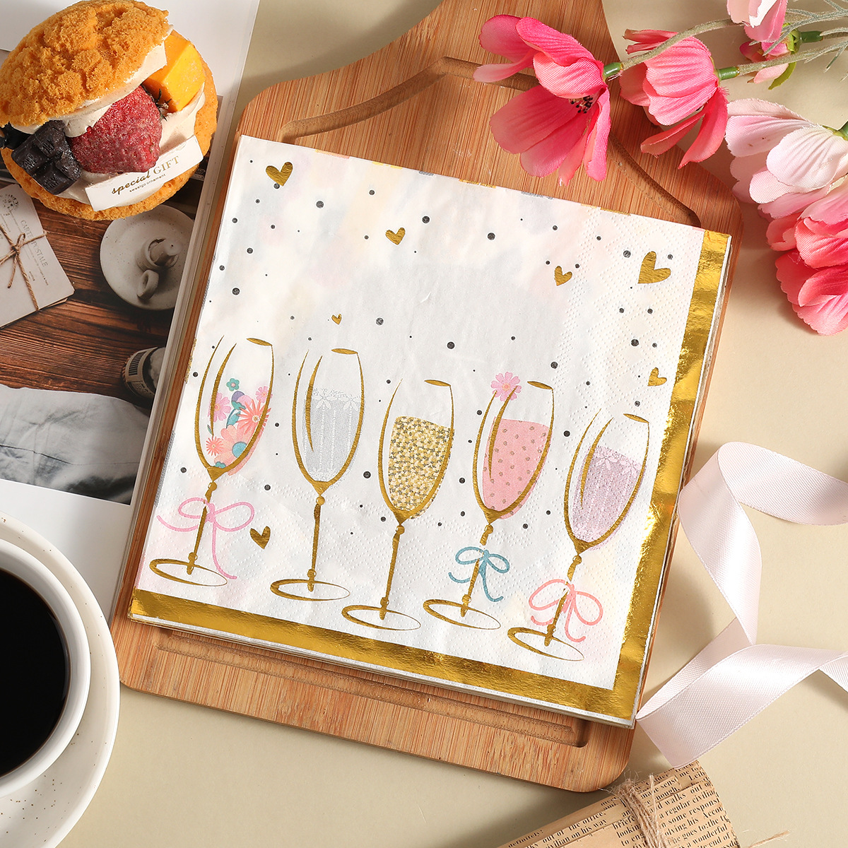 square tissue gold-stamped wine glasses square tissue high-end disposable paper napkins for hotels, restaurants, celebrations, and anniversaries—wholesale