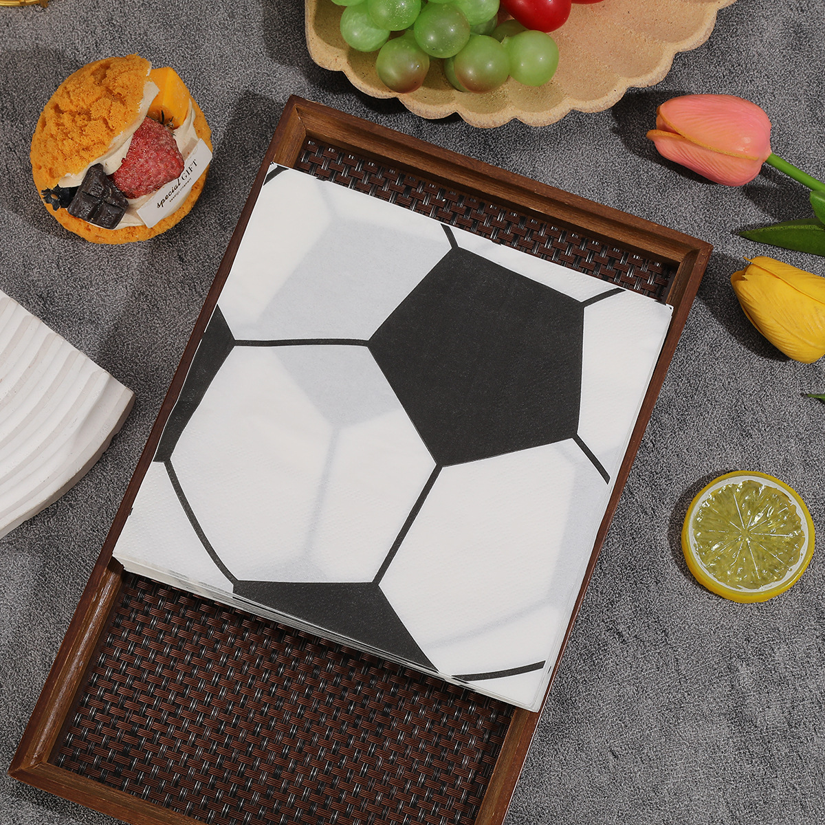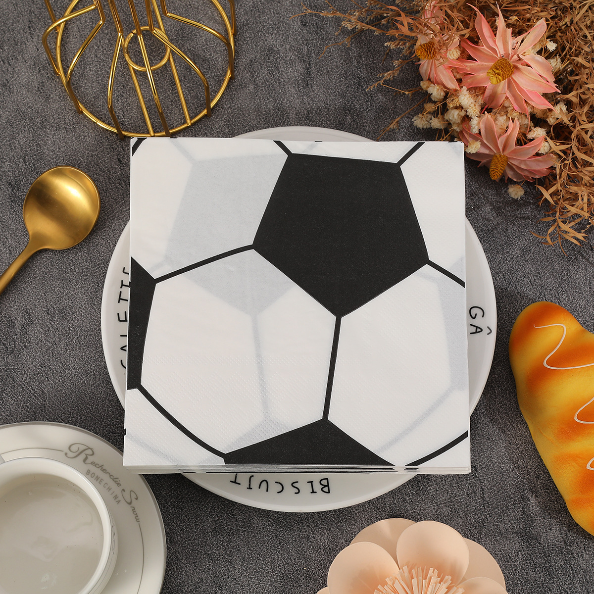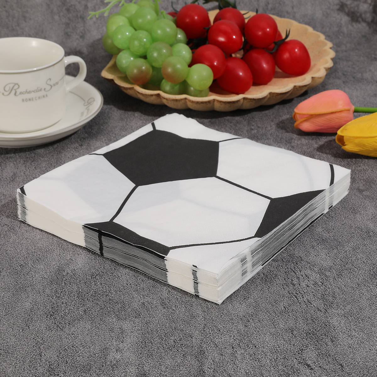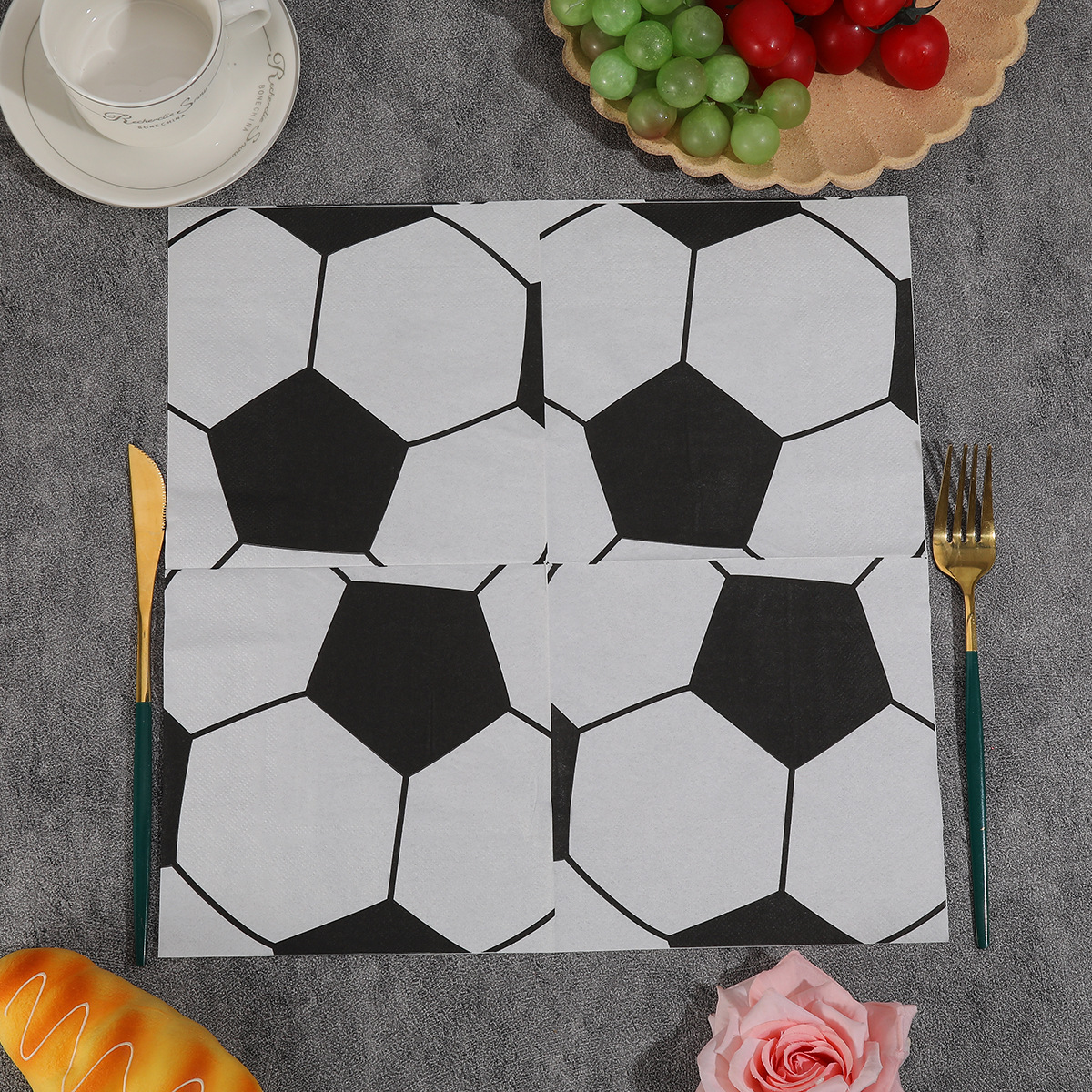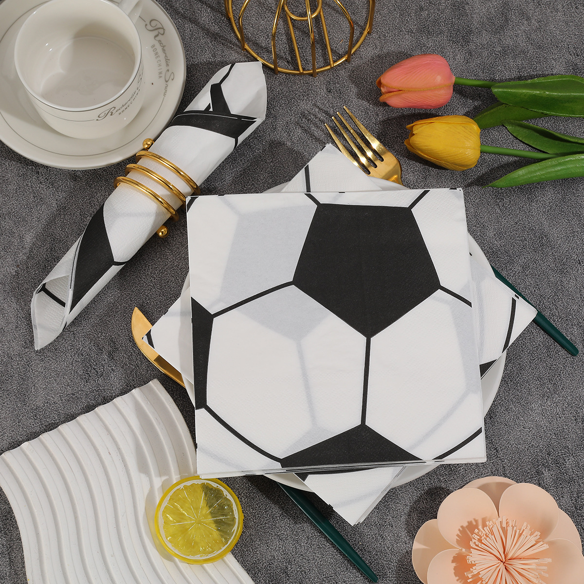 black and white soccer-themed party napkins, hotel and holiday custom logo tissues, virgin wood pulp household napkins