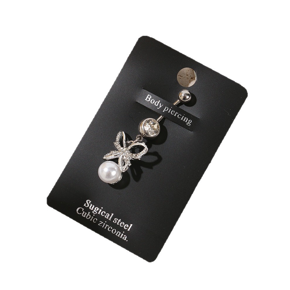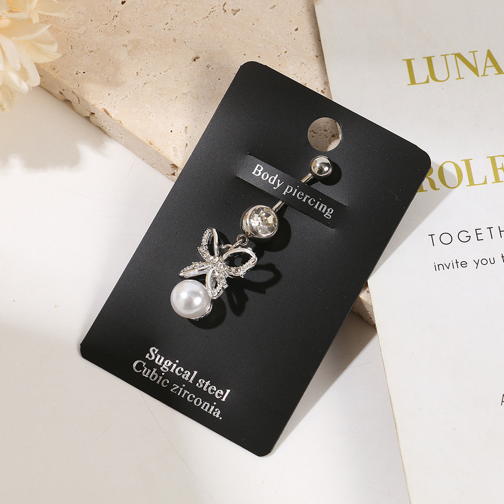 amazon europe and america cross border hot sale stainless steel diamond belly ring pearl butterfly navel stud piercing jewelry