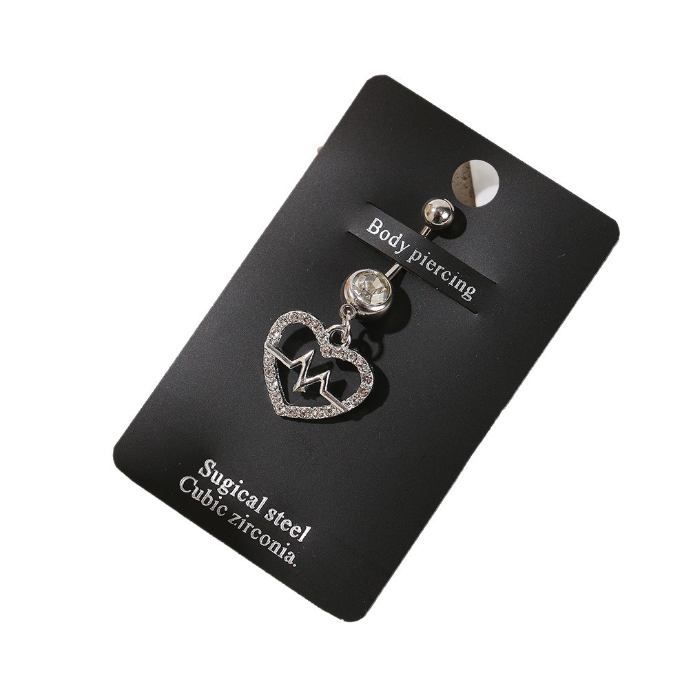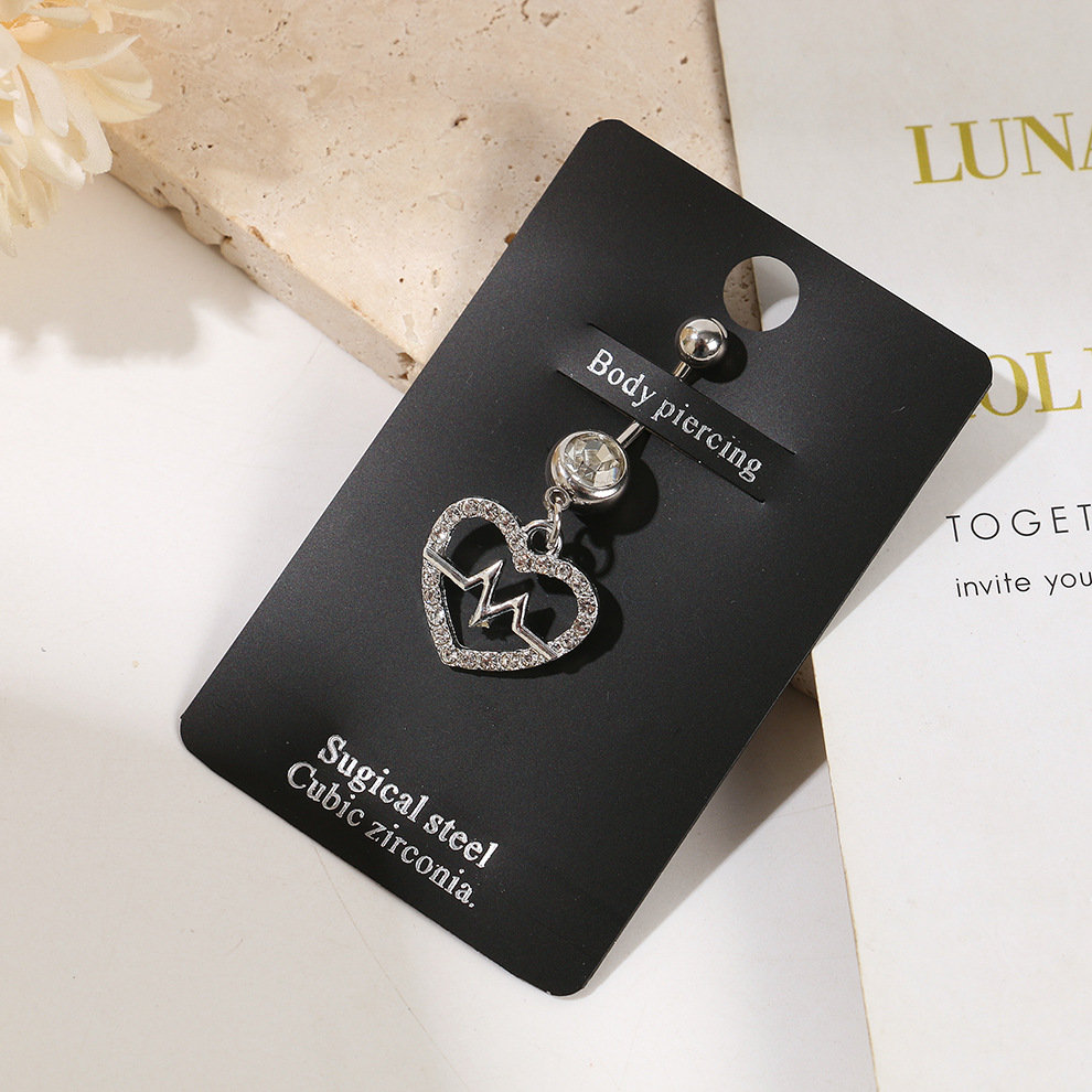 amazon europe and america cross border hot sale stainless steel diamond belly ring heart love navel stud piercing jewelry