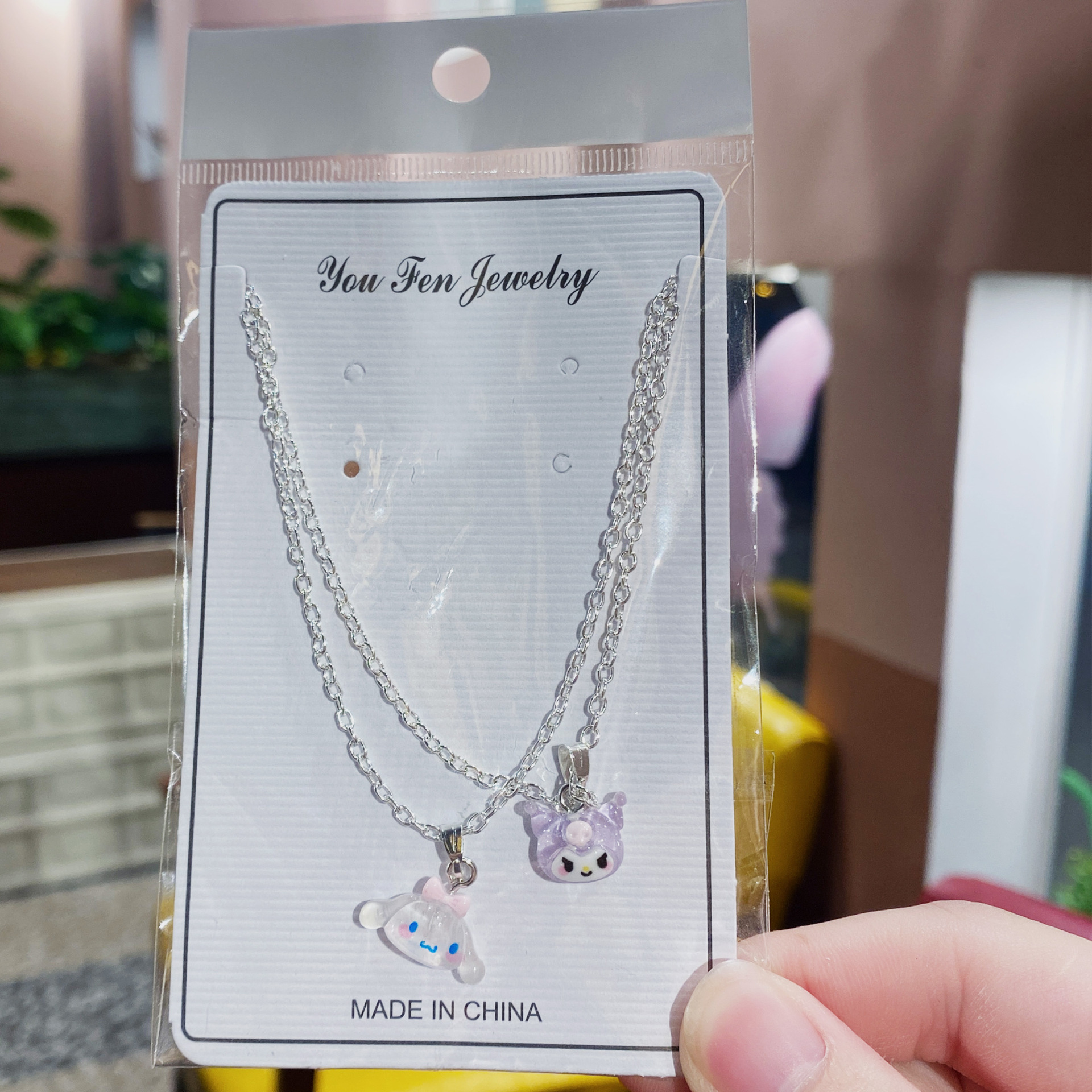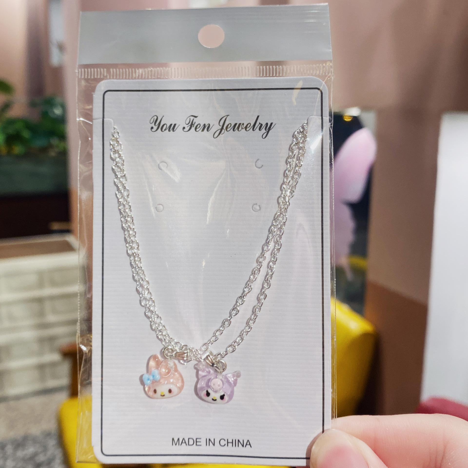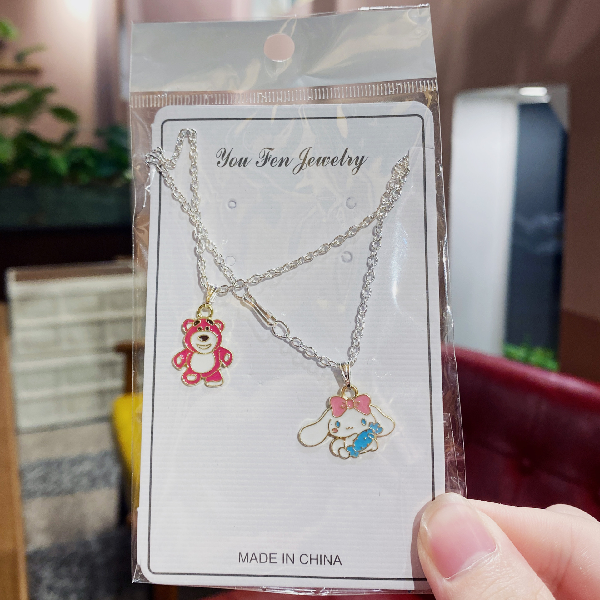 粉色熊+抱糖狗项链两条装