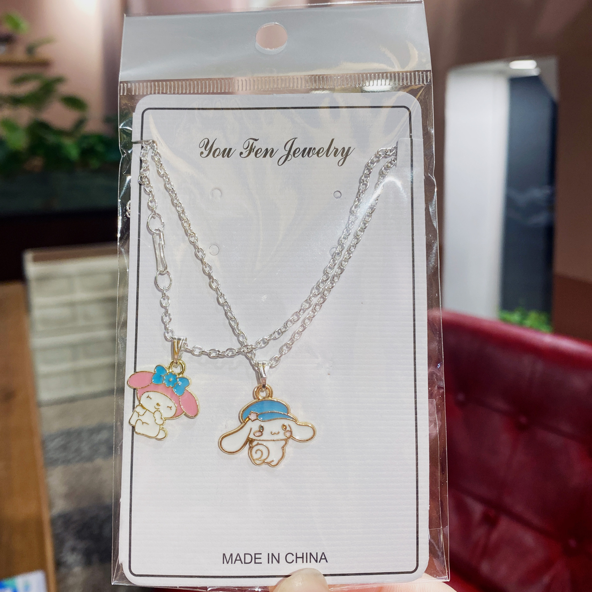 偷笑兔子+蓝帽玉贵狗项链两条装