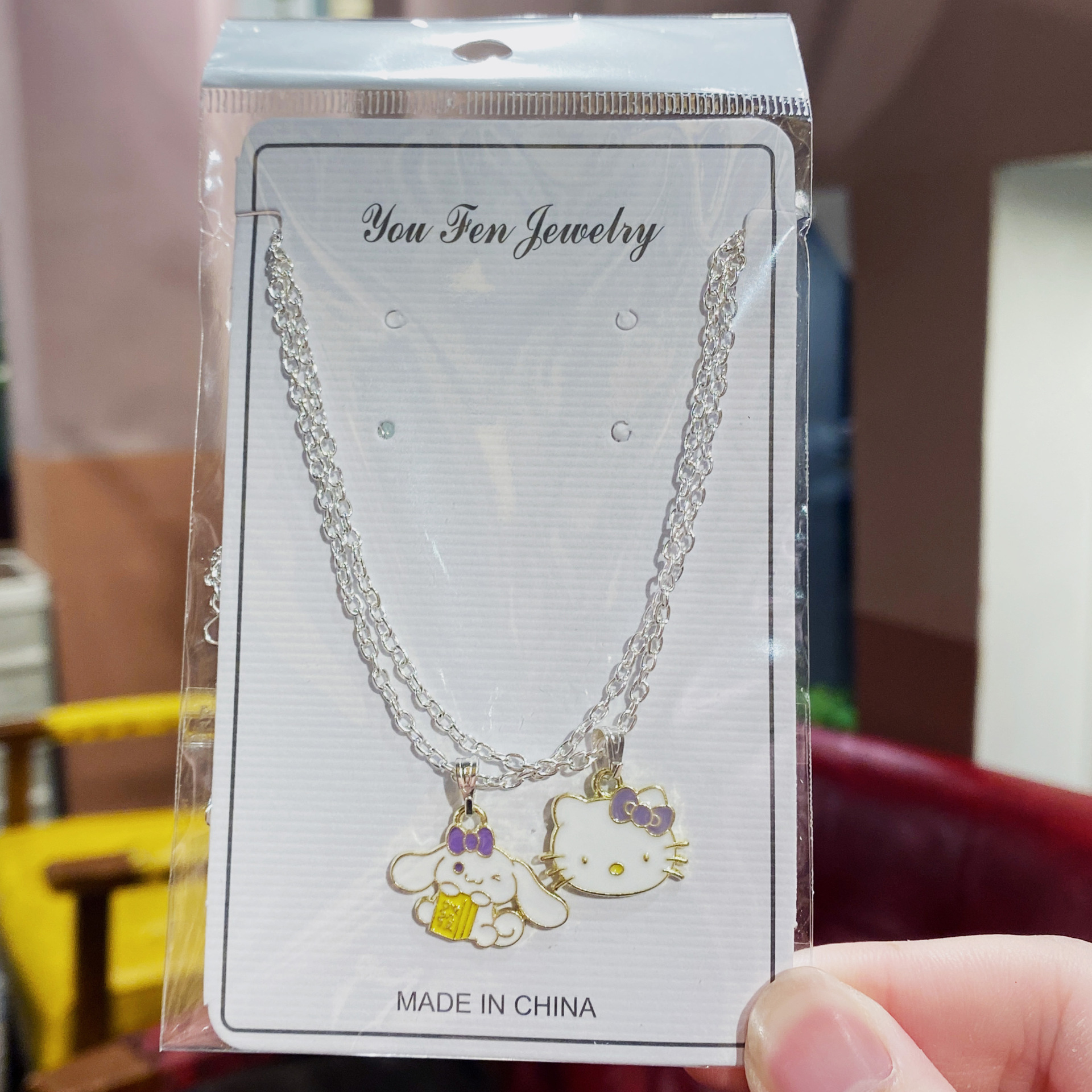 紫色抱财狗+紫色领结猫项链两条装