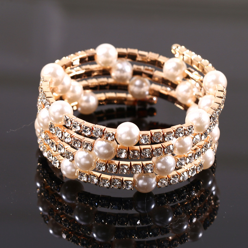 款式17金色弹性水钻珍珠