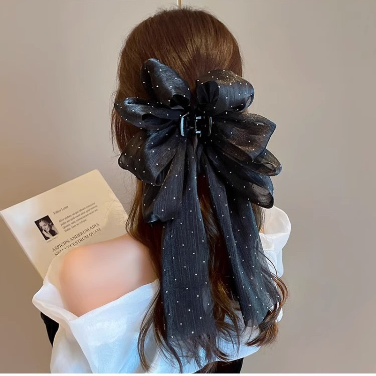 黑色满天星水钻泡泡抓夹【13cm】