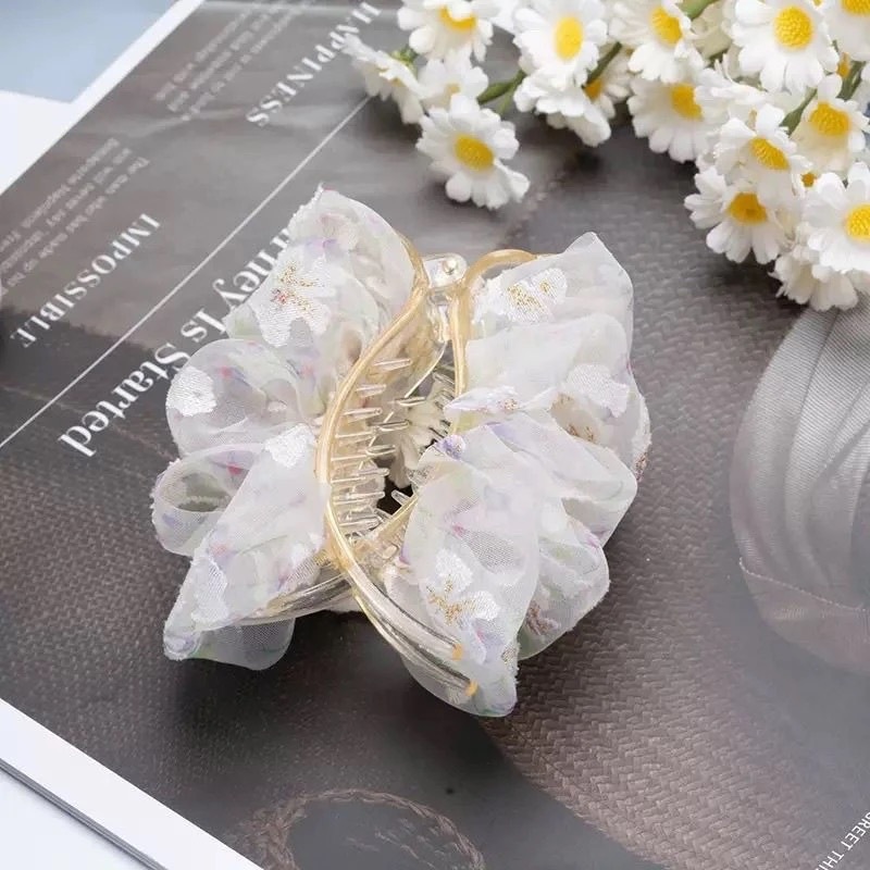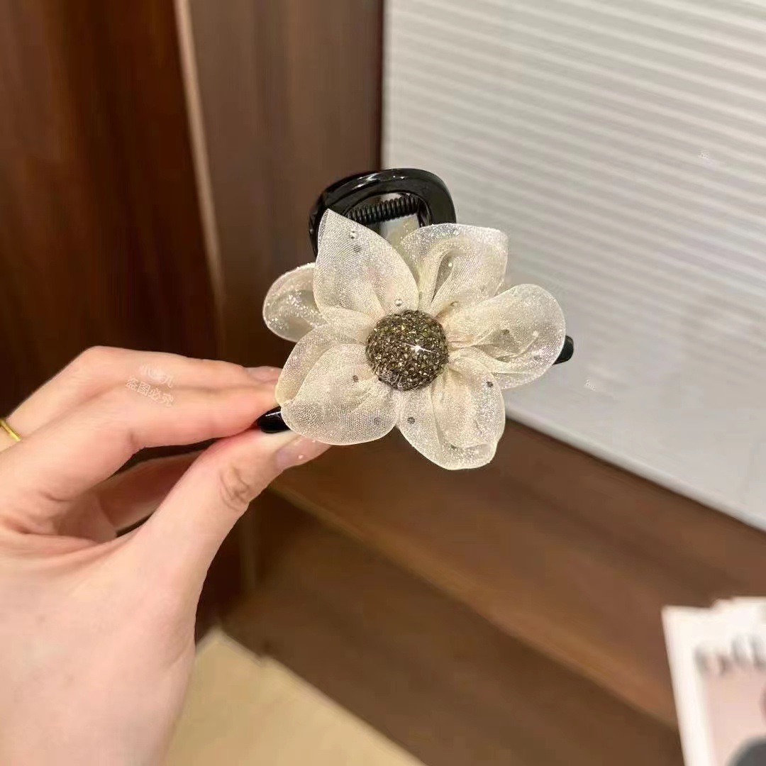 网纱花朵抓夹【米白色】