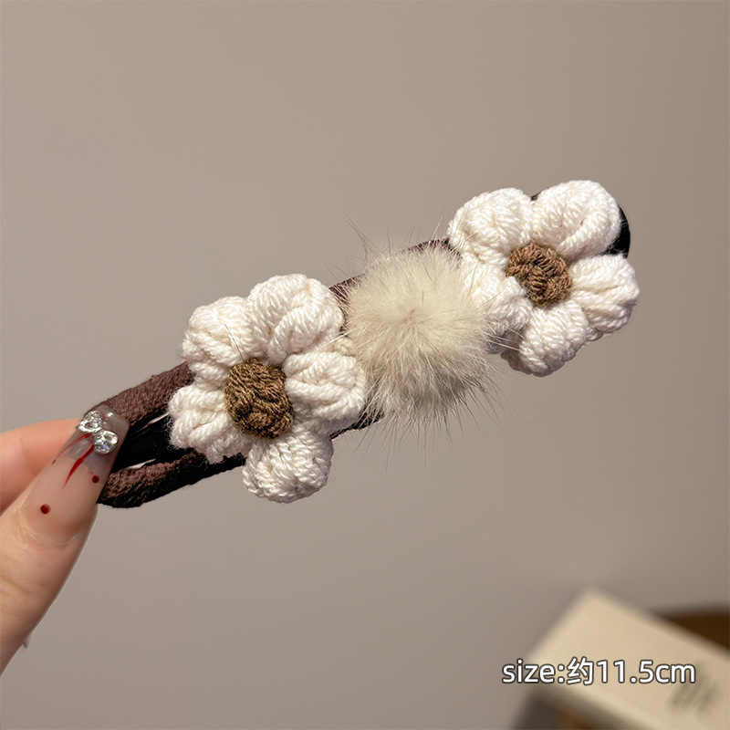 米色两朵小花鸭嘴夹
