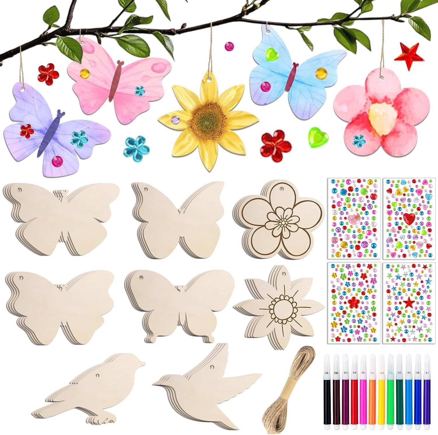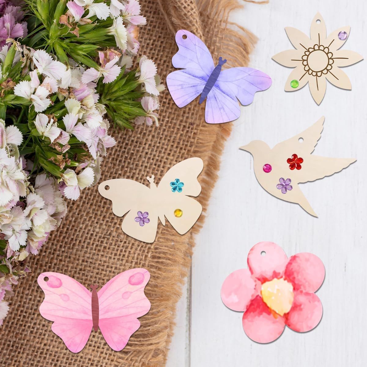 floral wooden decorations spring/summer flower wood hanging sunflower wood cutout spring/summer tree decor party hanging ornaments