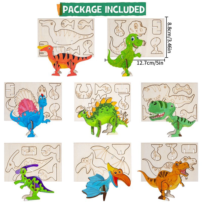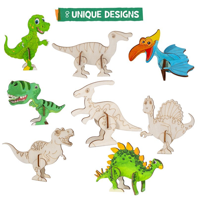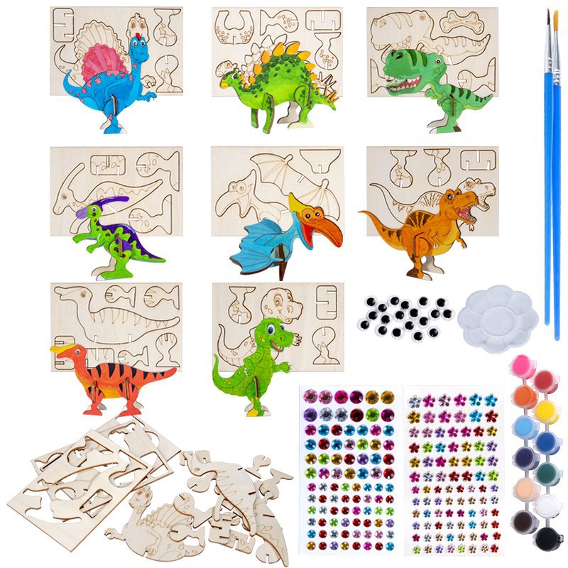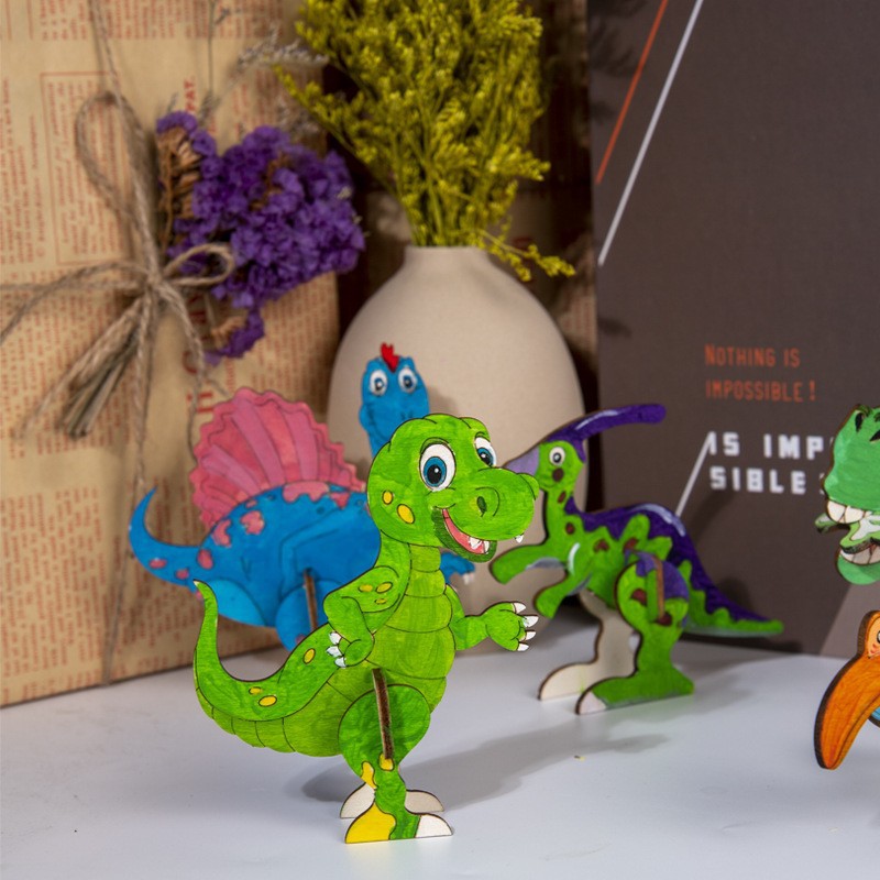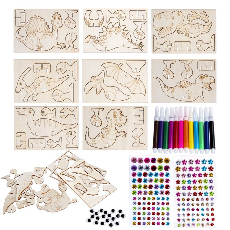 cross-border wooden cartoon dinosaur zigsaw puzzle set unfinished craft set children's birthday painting decorations