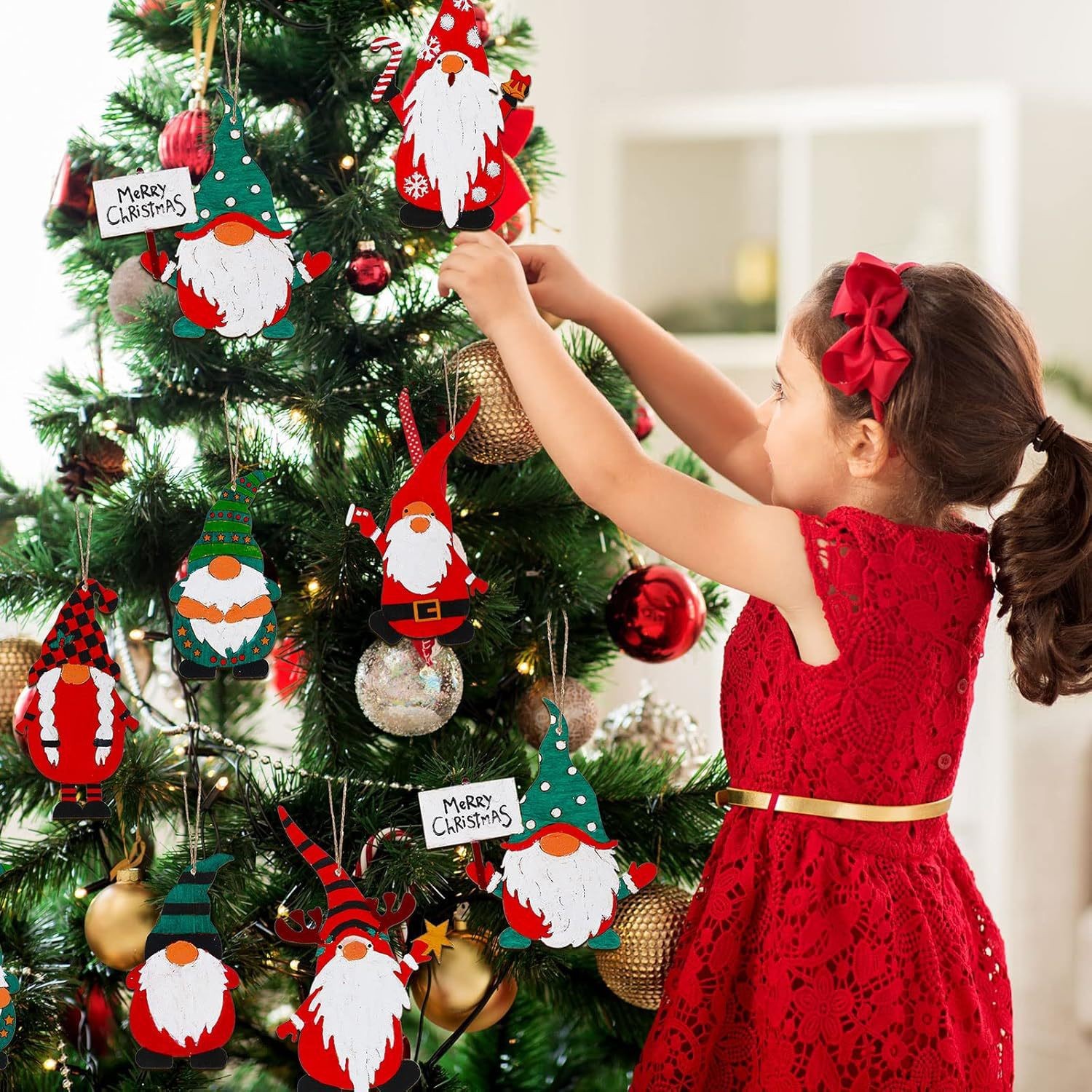 wooden craftwork creative christmas dwarf pendant home decor hand-painted diy props christmas hanging decoration