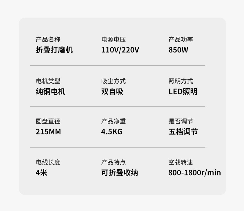 7225-bd single 4a motor, 2.2m +100 sheets of sandpaper
