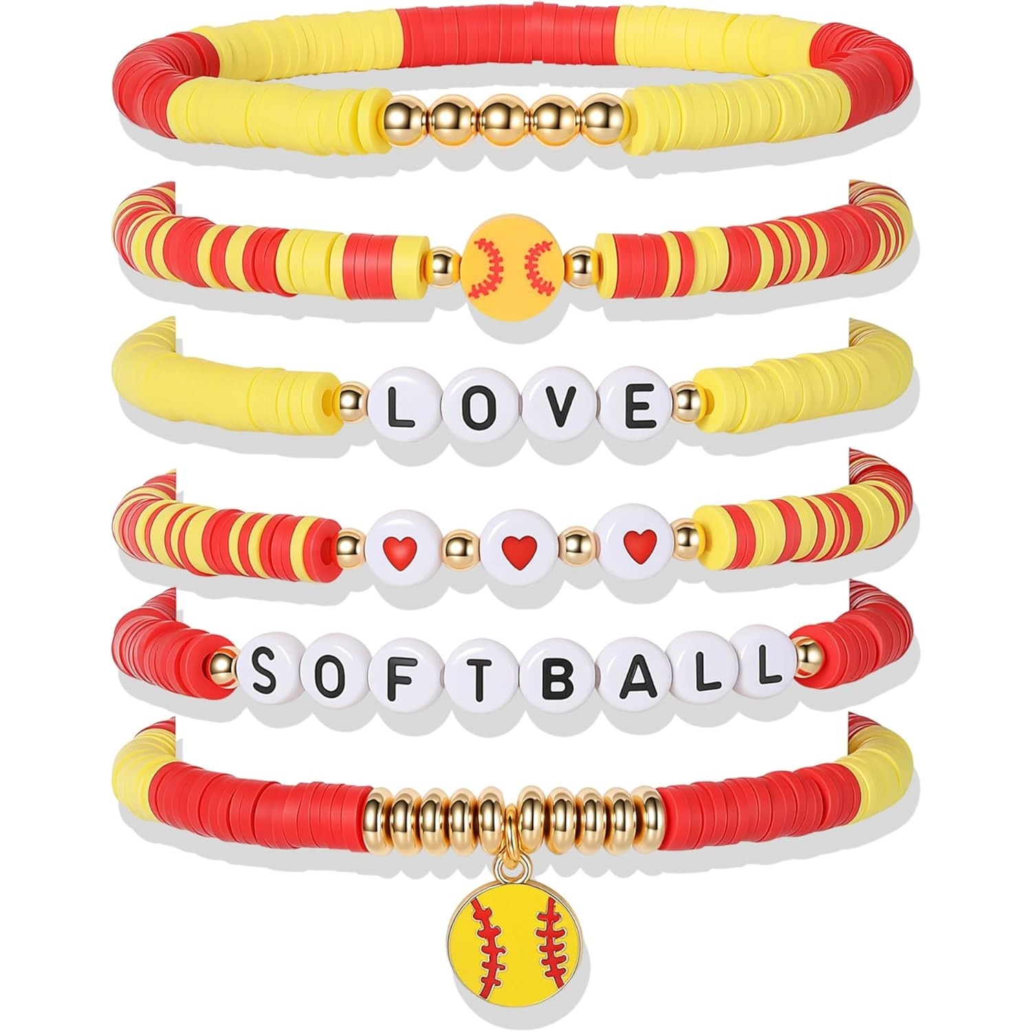6条红黄垒球套装