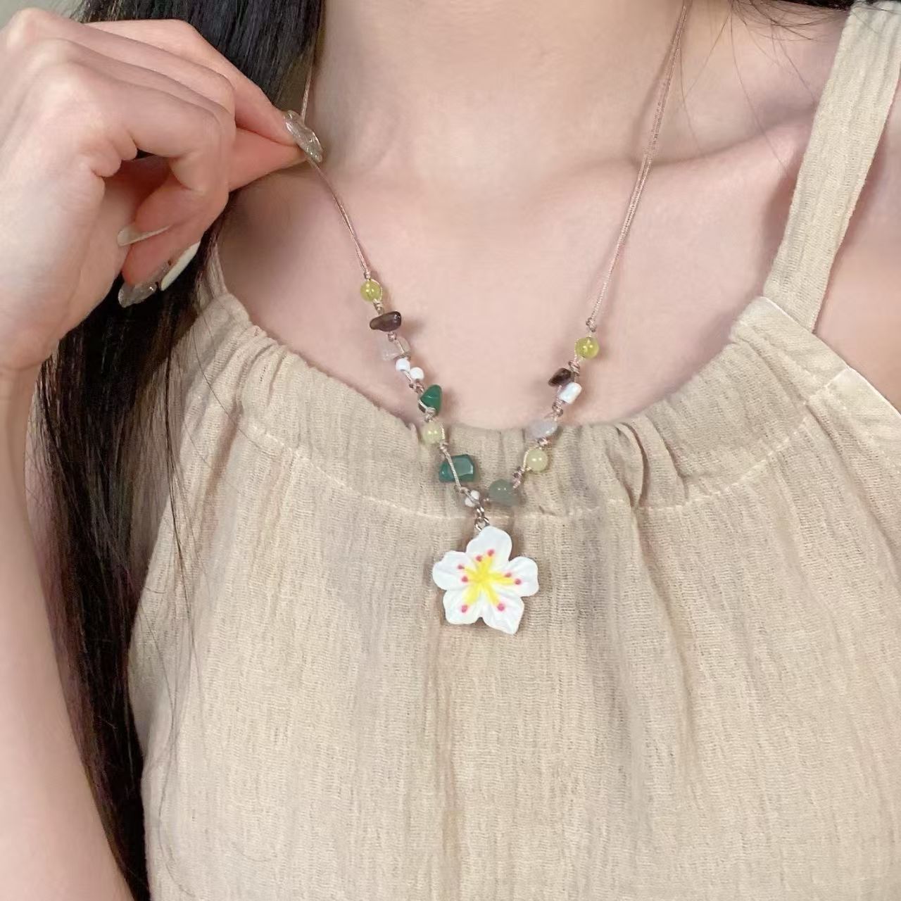 白色花朵项链