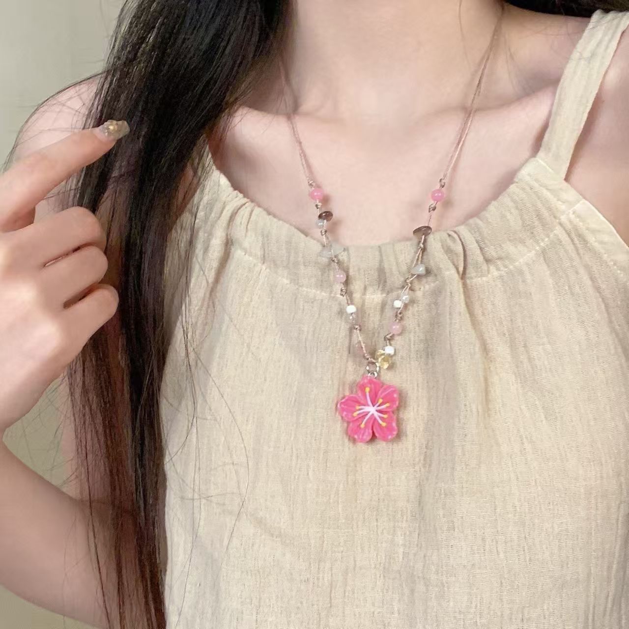粉色花朵项链
