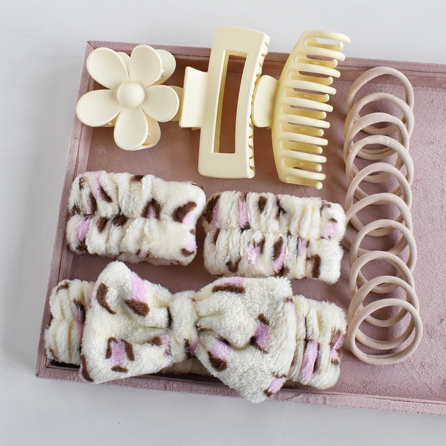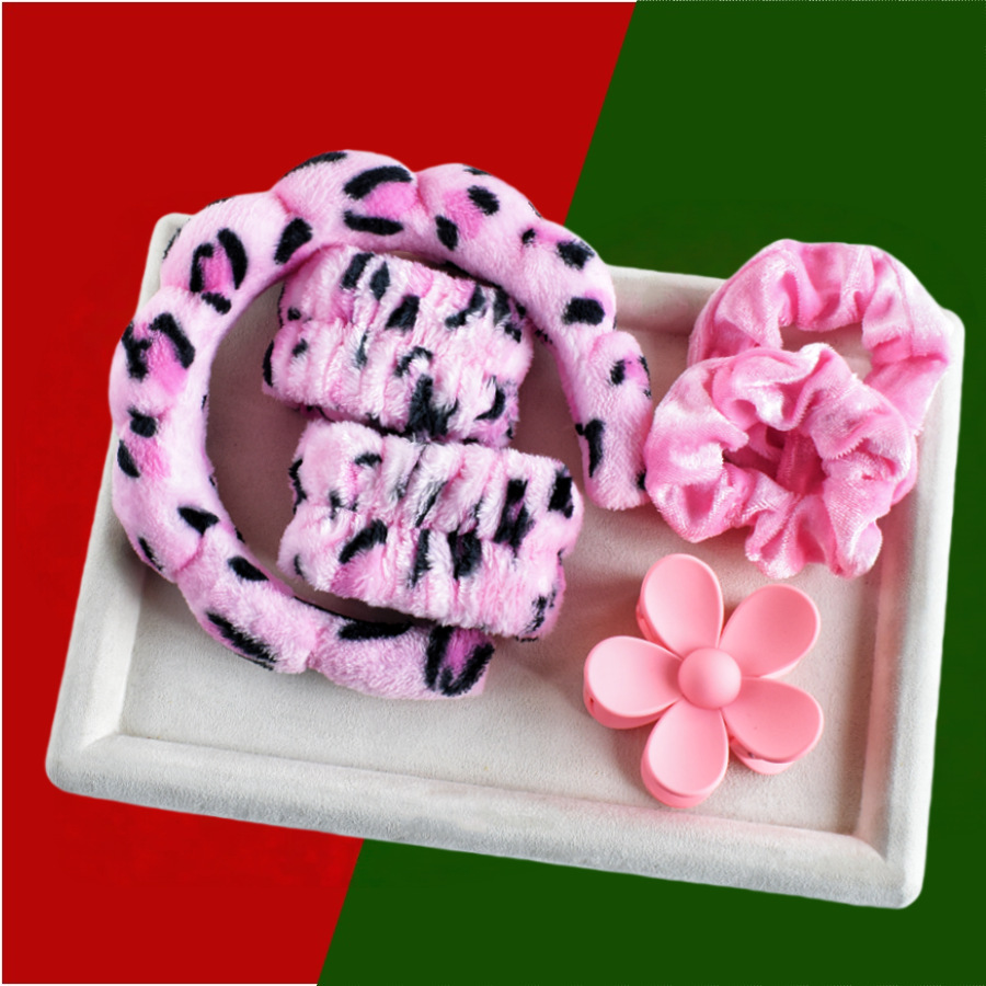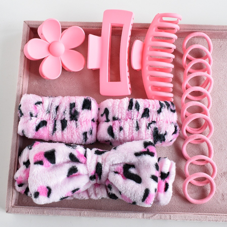 10#粉豹纹色海绵发箍6件套