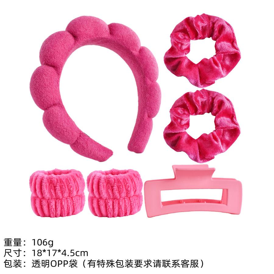 9#玫红色海绵发箍6件套