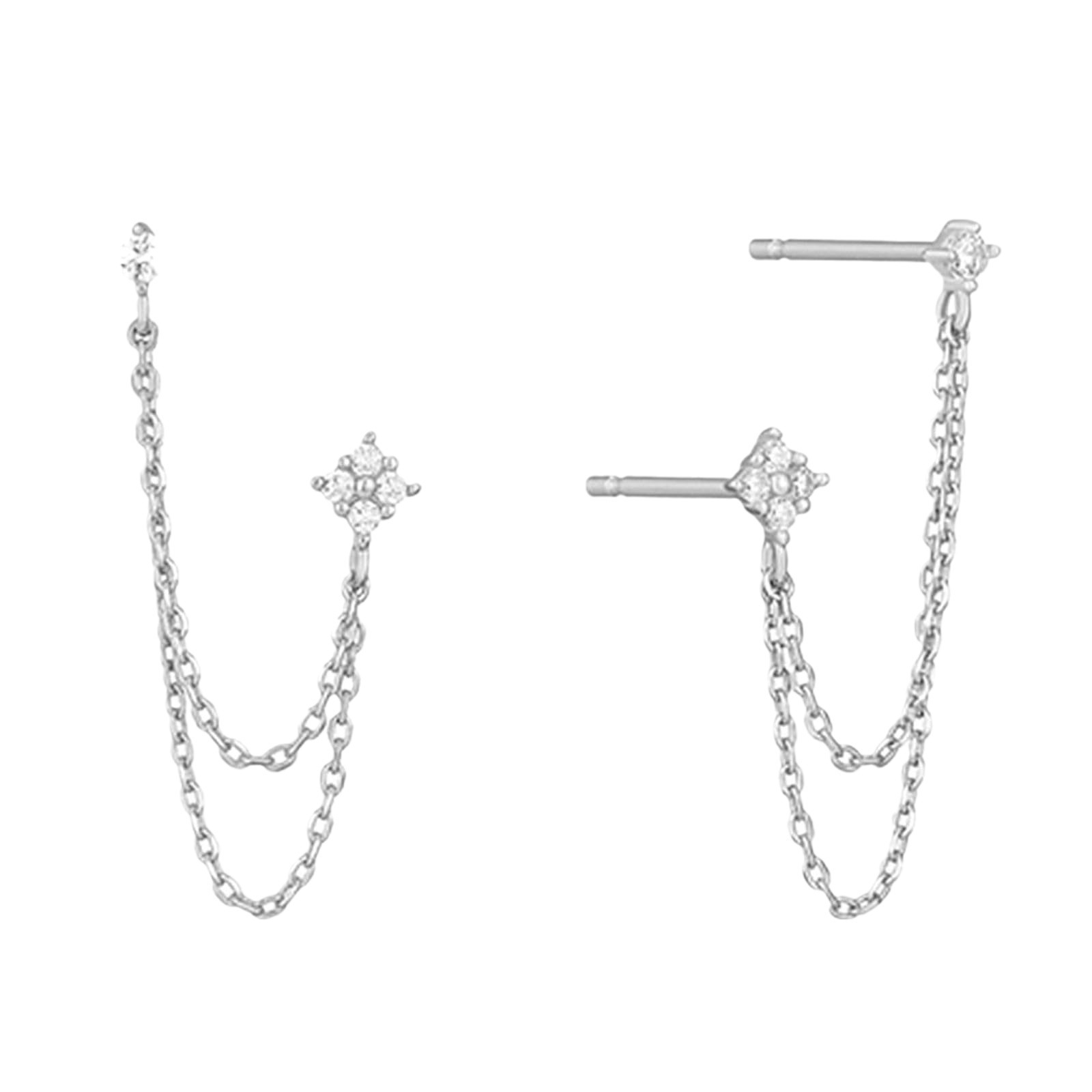 单只流苏耳线白钻【钢色】