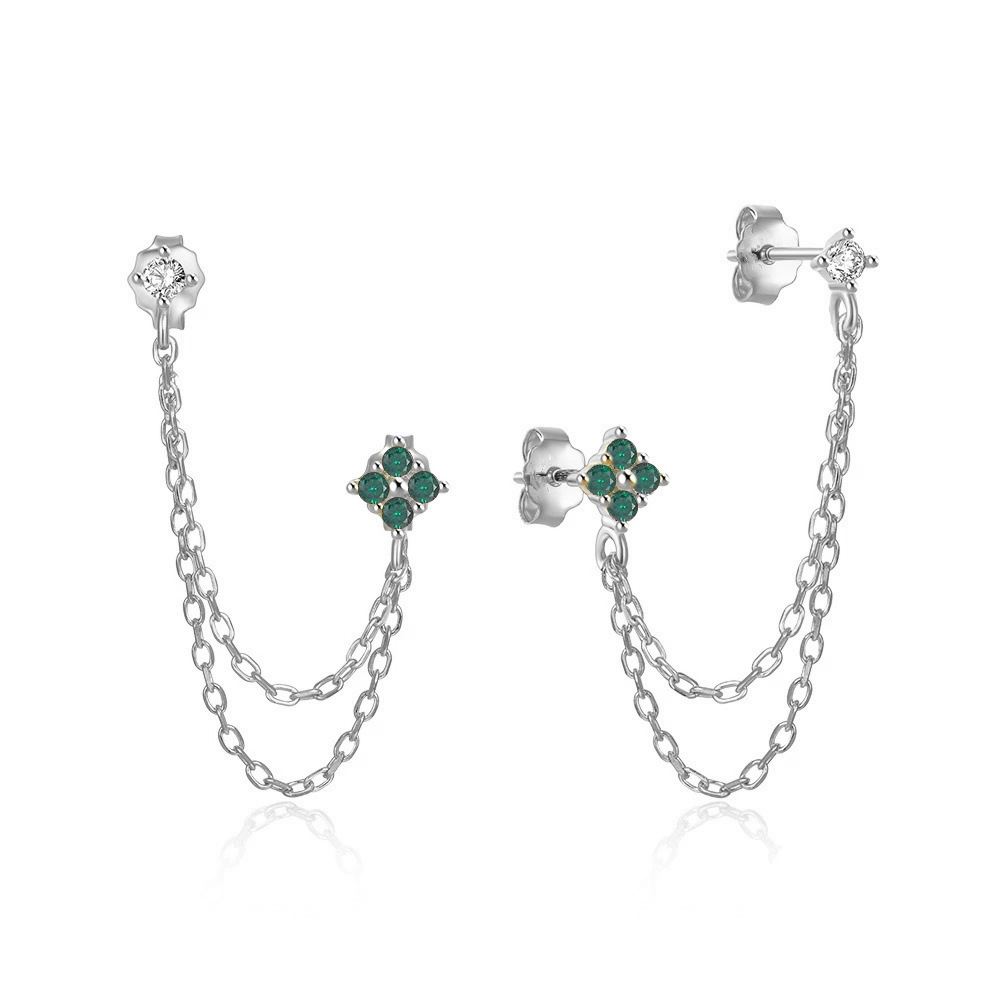 单只流苏耳线绿钻【白金色】