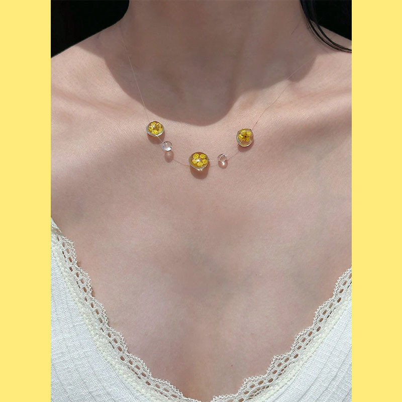 黄色花朵露珠项链