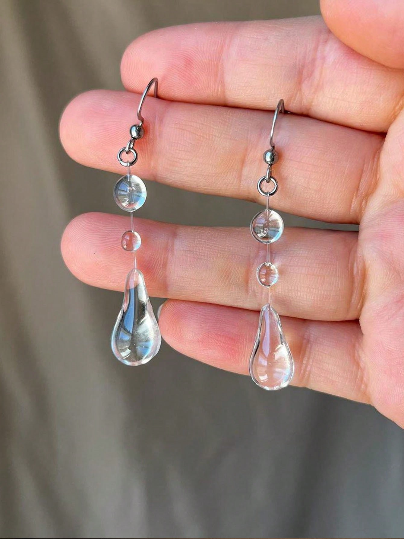 透明水滴露珠耳环