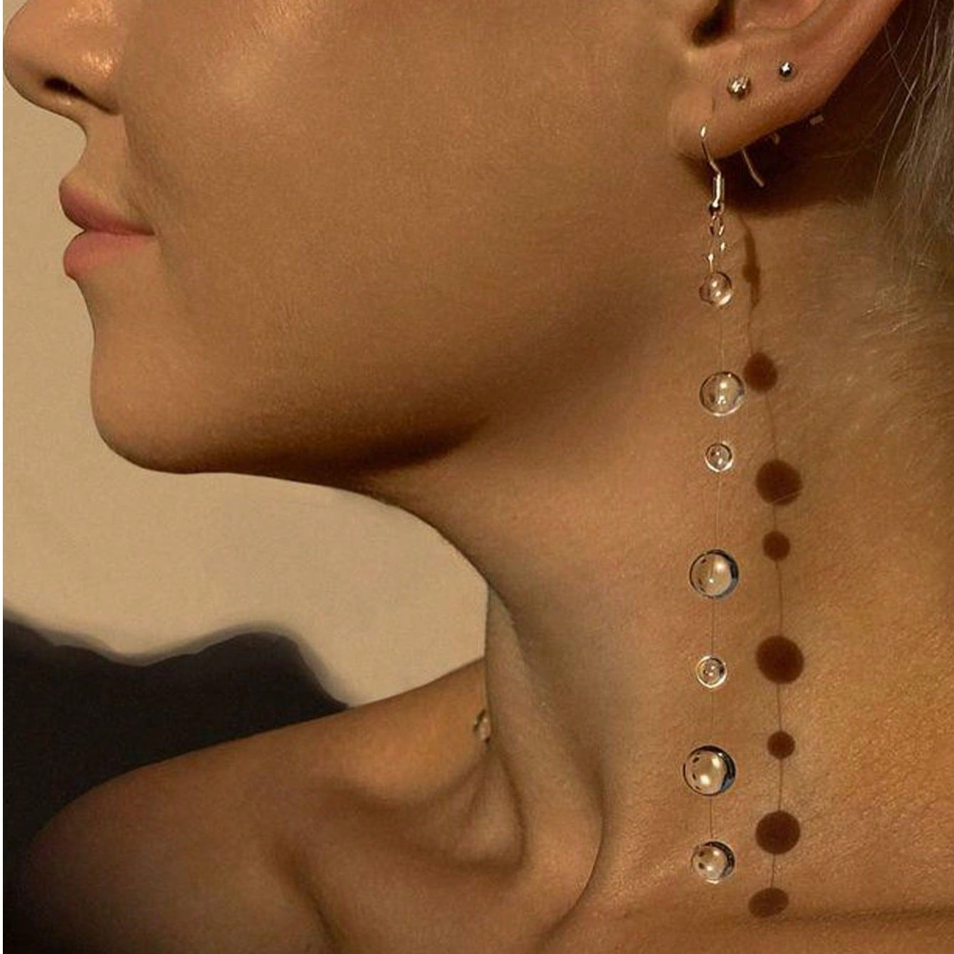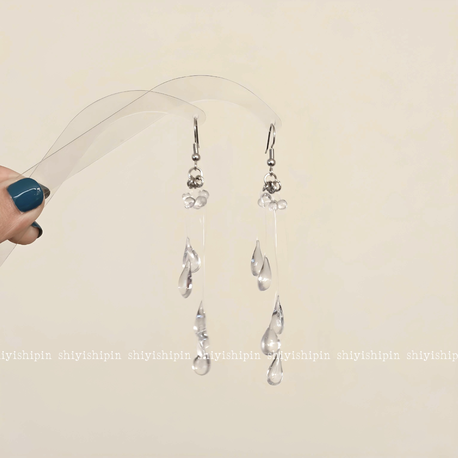 透明一体式露珠耳环