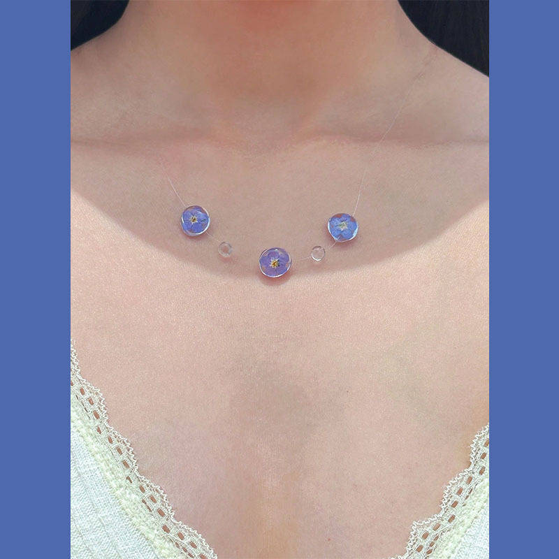 蓝色花朵露珠项链