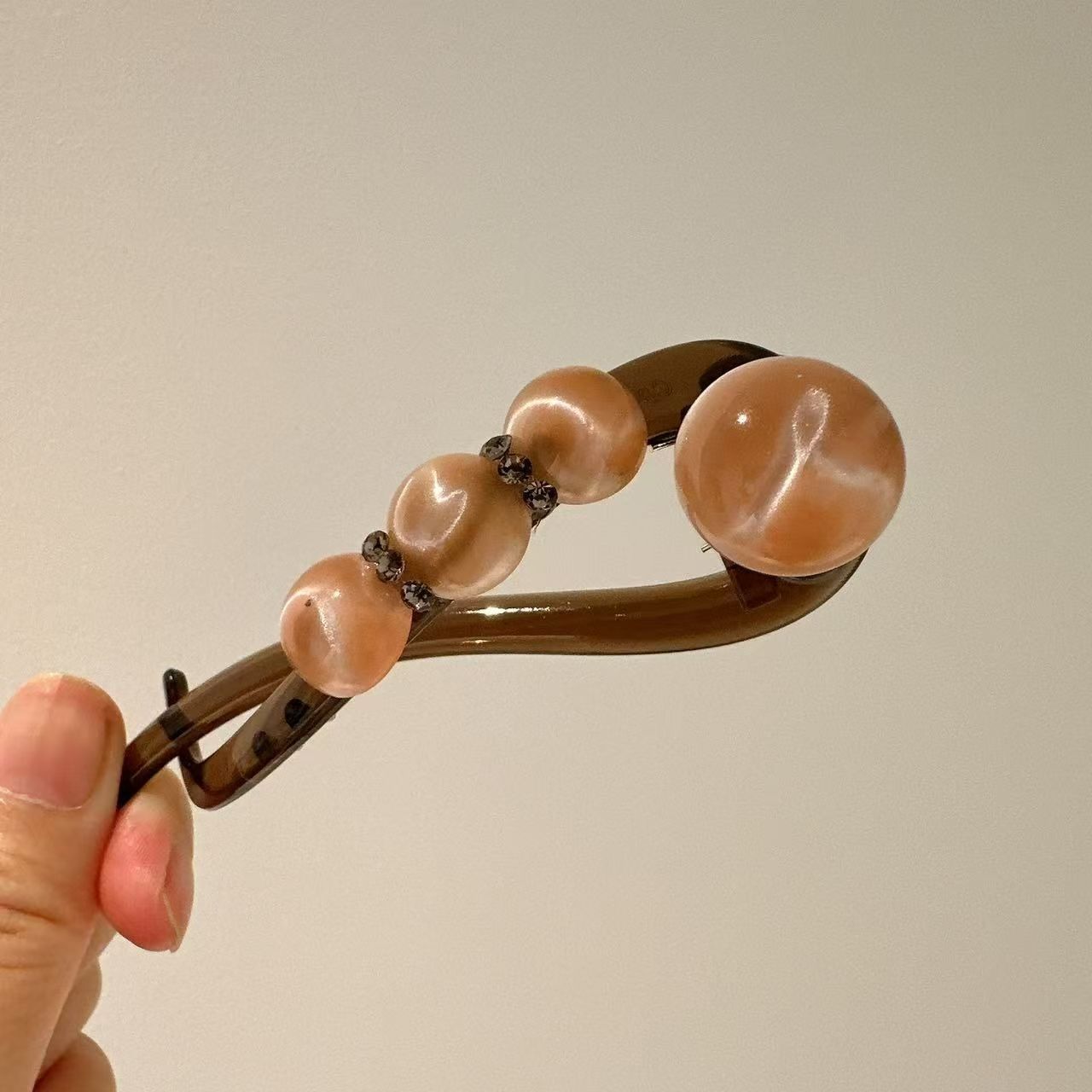 一字水钻扭扭夹-咖色