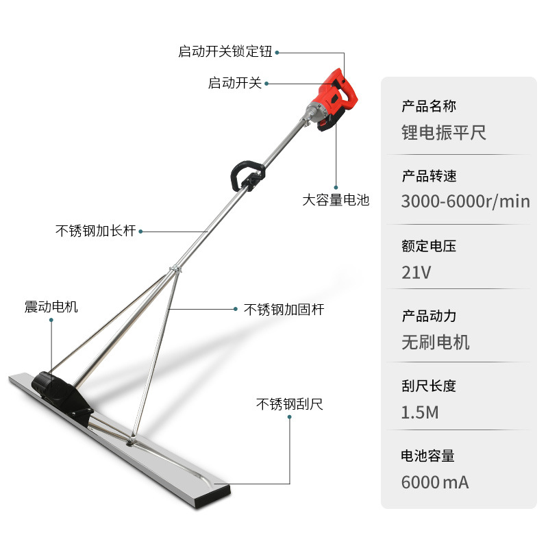 dual-motor 1.8m lithium-ion vibration ruler, 10 sections, two batteries one charger