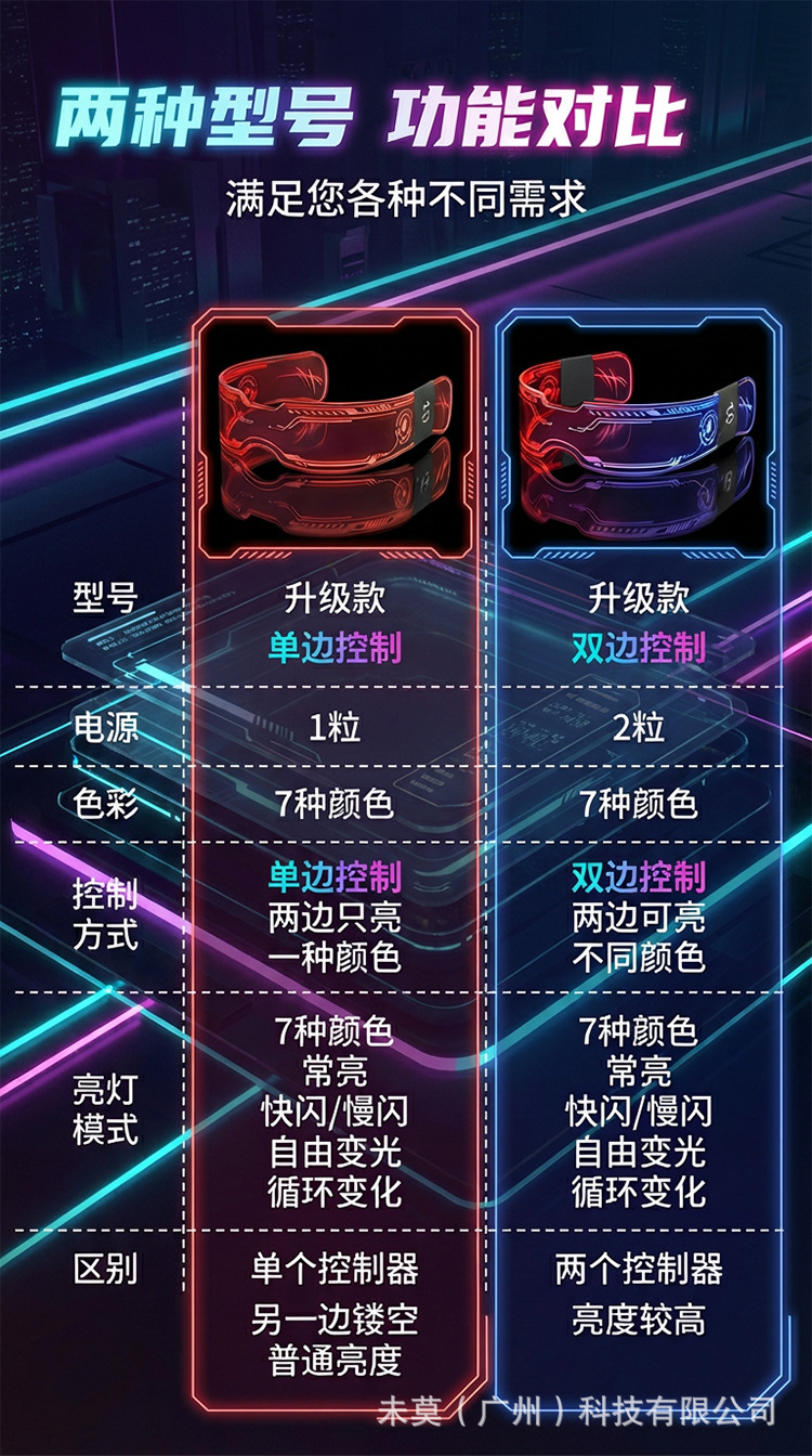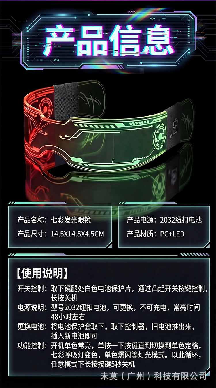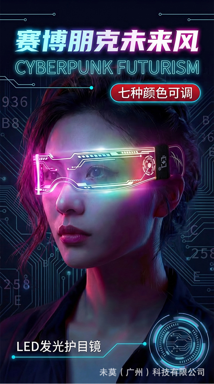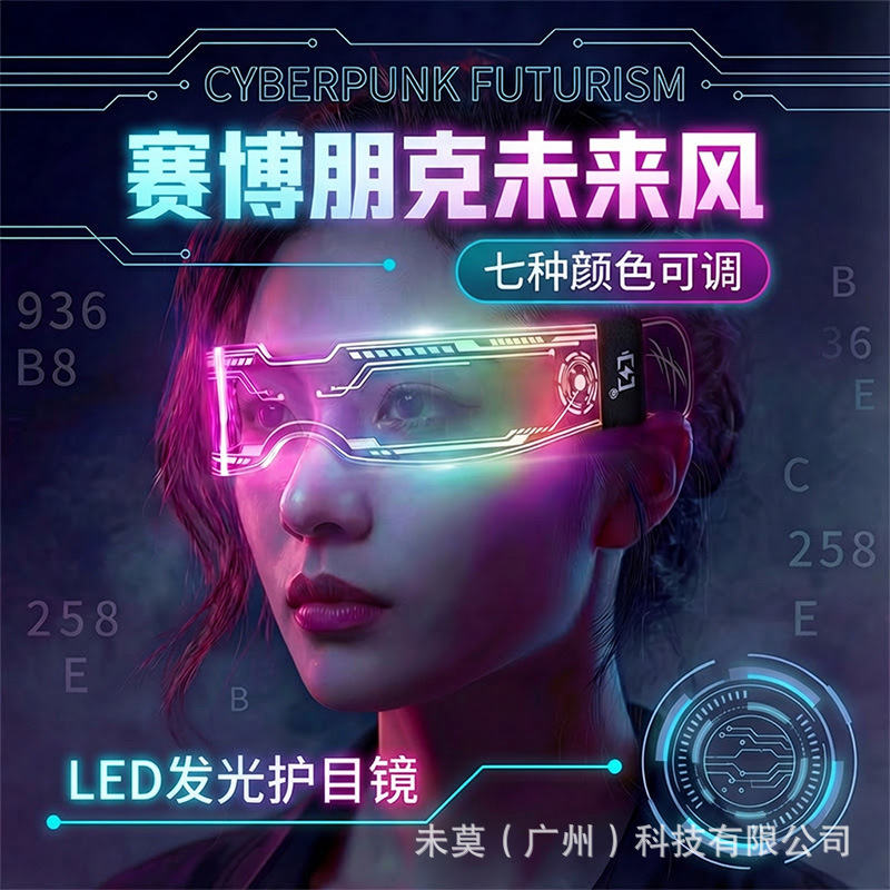 cyber light-up glasses [one side color changeable] with battery and colorful box