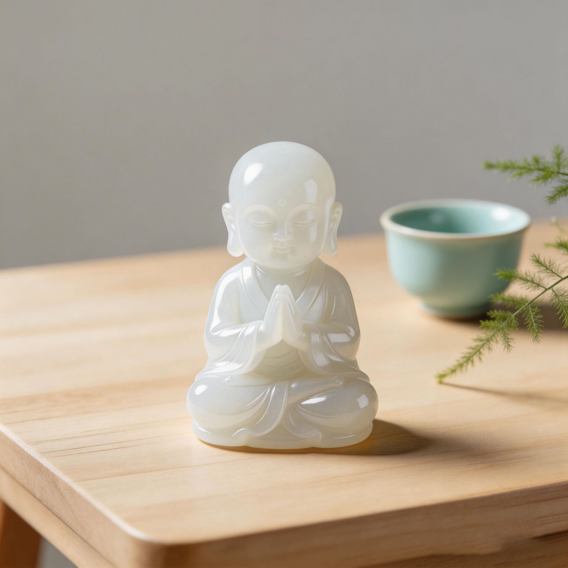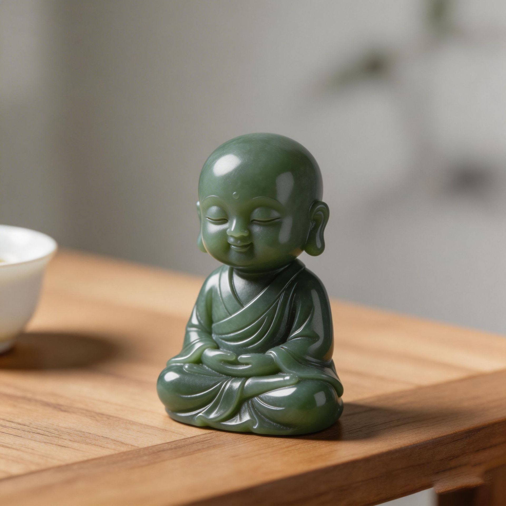 source factory all kinds of jade tea ornaments custom gray jade zen little monk decoration jade carving tea table tea set