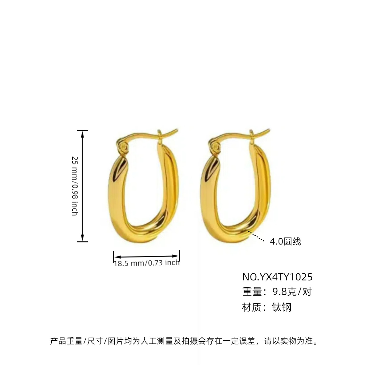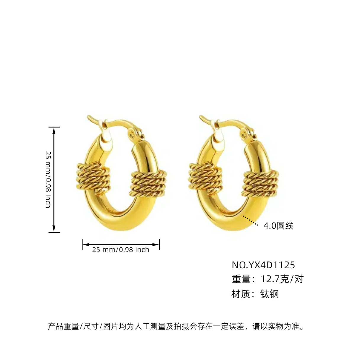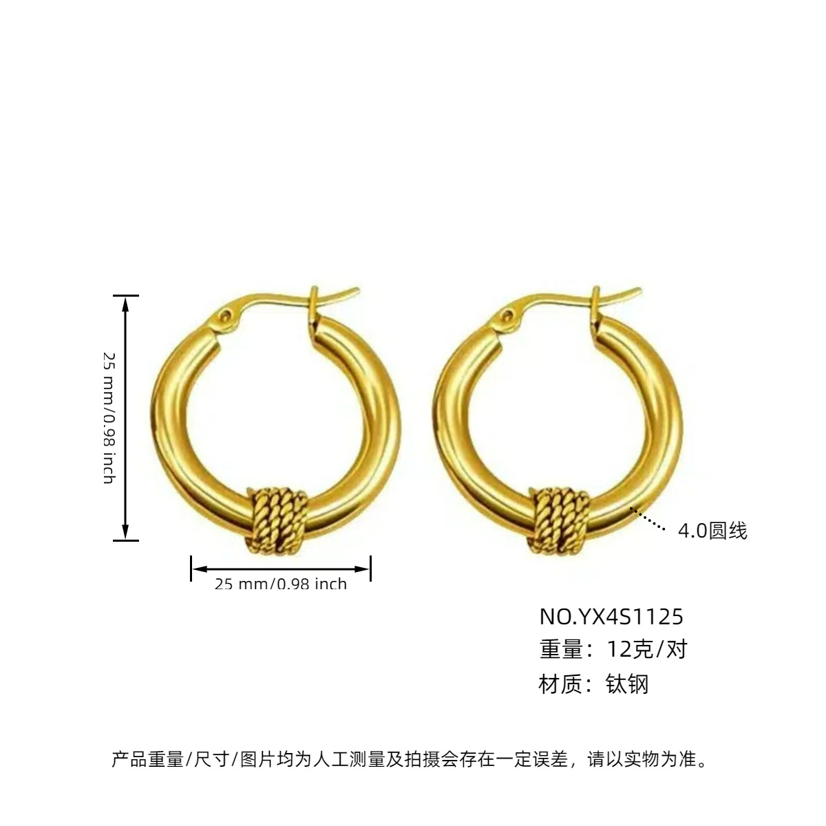 耳夹款4.0外径金色25mm