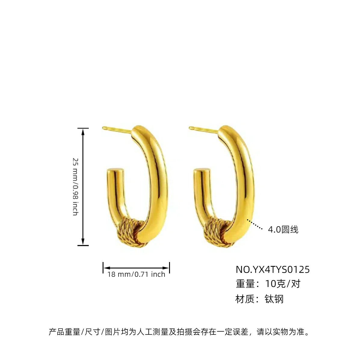 耳夹款4.0外径金色18mm
