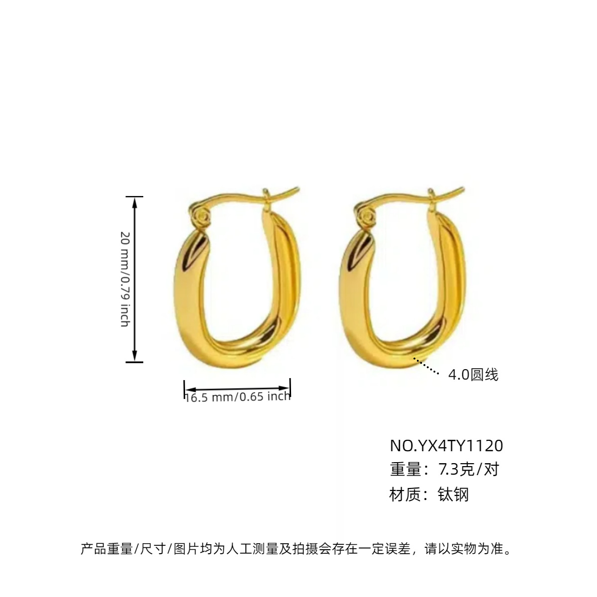 耳夹款4.0外径金色20mm