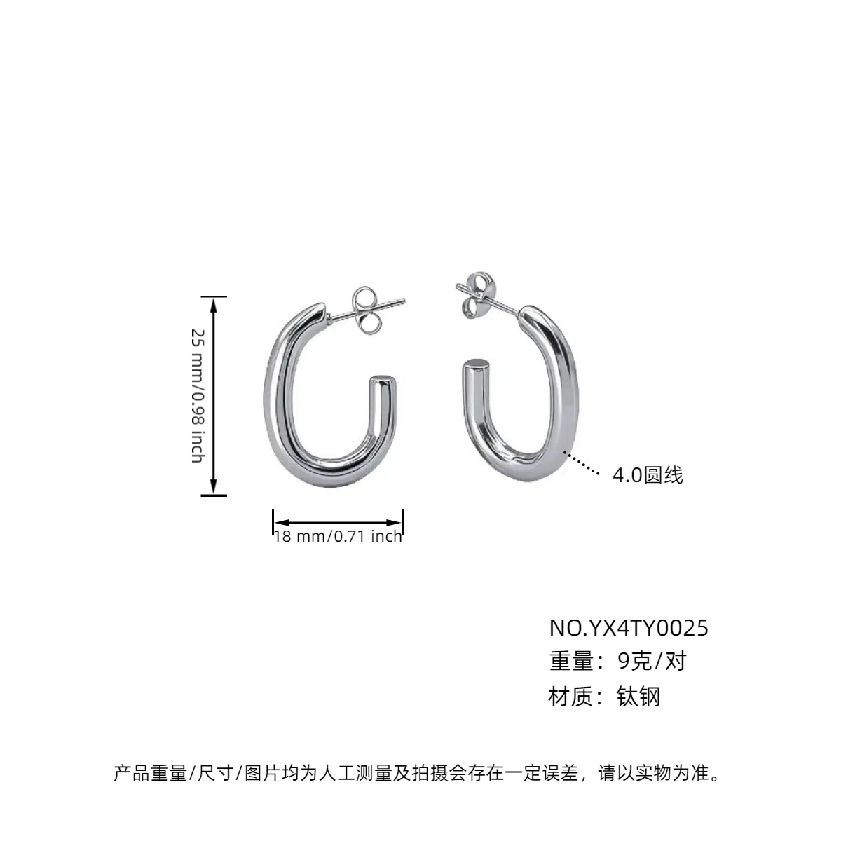 耳夹款4.0外径钢色25mm